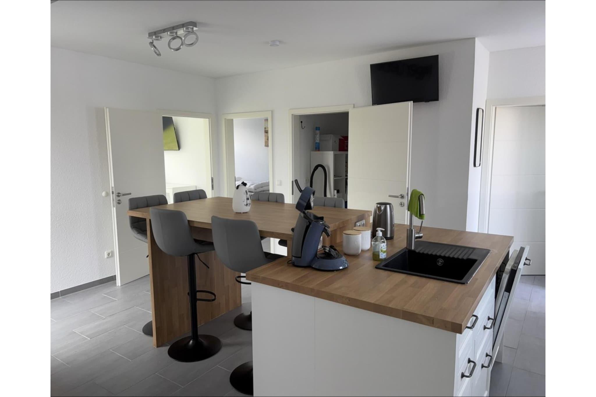 Nyd en afslappende ferie i Königskrabbe feriebungalow, en moderne og komfortabel oase af velvære med cirka 70 m² boligareal. Nærheden til stranden gør denne bungalow til den ideelle indkvartering for familier, par og dem, der søger fred og ro, og som sætter pris på at være tæt på havet. Stranden og havvandspoolen ligger kun få minutters gang væk og tilbyder de perfekte rammer for afslappende dage ved Nordsøkysten. Det åbne opholdsområde kombinerer køkken, spisestue og stue til et lyst og indbydende rum. Her kan I lave mad, spise og slappe af sammen. Det fuldt udstyrede køkken har induktionskogeplade, opvaskemaskine, Senseo-kaffemaskine og køleskab med frostboks. Smart-tv'er i alle værelser, gratis Wi-Fi, elektrisk gulvvarme og en hyggelig elektrisk pejs sikrer behagelige aftener. Soveværelset har en komfortabel dobbeltseng (1,80 x 2,00 m), mens børneværelset har to enkeltsenge (90 x 200 cm). En sovesofa er også tilgængelig. Det moderne badeværelse har et vindue, en bruseniche og en brusestol. Der er også en vaskemaskine. Den overdækkede terrasse er perfekt til udendørs spisning. Elektriske skodder, en vægboks til elbiler og en privat parkeringsplads fuldender faciliteterne. Hunde er velkomne efter anmodning. Denne ikke-ryger bungalow tilbyder de ideelle rammer for en afslappende ferie ved havet.