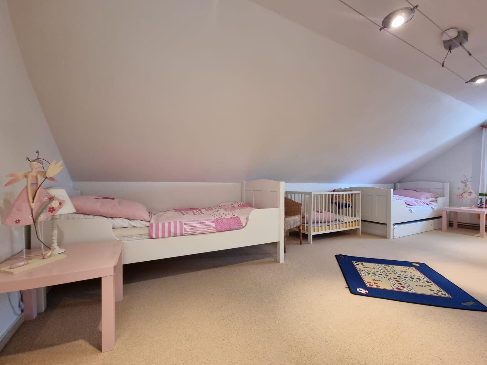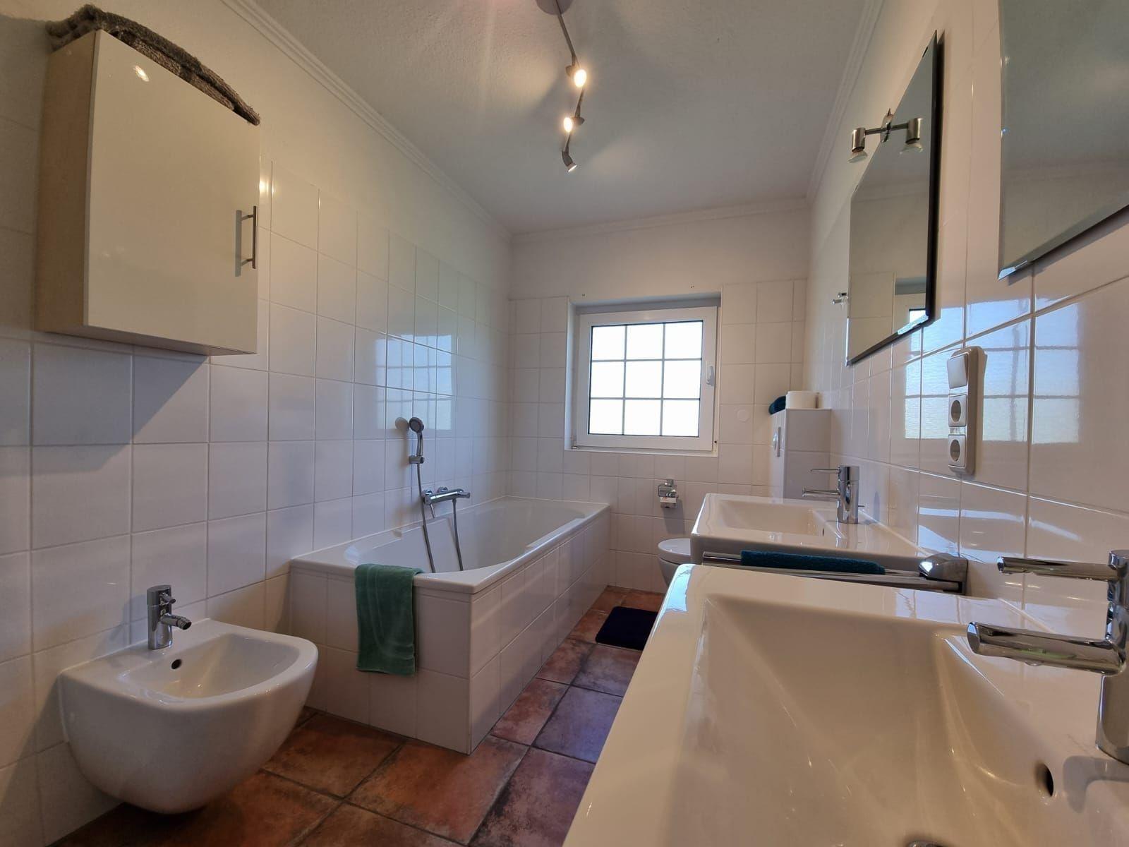 Diese Ferienwohnung bietet großzügigen Raum und umfassende Ausstattung für einen komfortablen Aufenthalt. Fünf Schlafzimmer, darunter vier Doppelzimmer und zwei Einzelbetten sowie zwei Kinderbetten, gewährleisten viel Platz für Familien oder Gruppen. Zwei modern gestaltete Badezimmer, eines mit Duschbad und das andere mit Badewanne, bieten zusätzlichen Komfort.