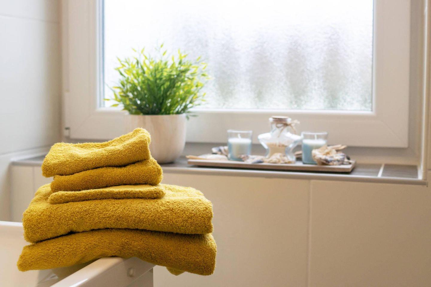 Extras wie Waschmaschine, Wäscheständer, Bügeleisen, Bügelbrett und Staubsauger erleichtern längere Aufenthalte. Ein Privatparkplatz und eine E-Bike-Ladestation stehen am Haus zur Verfügung.