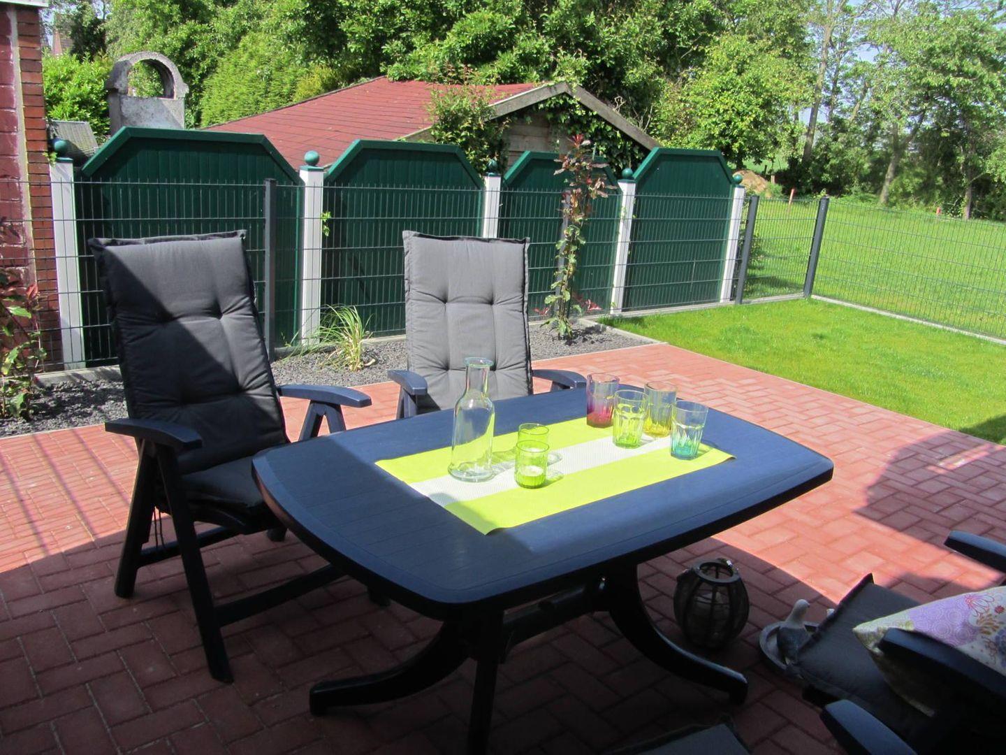 Das eingezäunte Grundstück ist ideal für Familien. Terrasse mit Markise, Garten mit Liegewiese, Sonnenschirm und Elektrogrill laden zum Entspannen ein.
