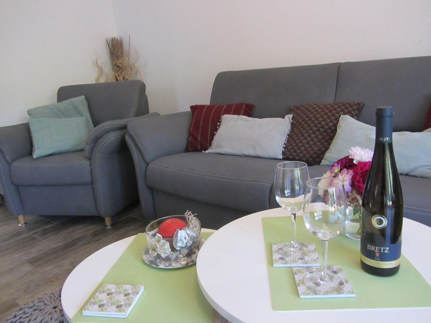 Der helle Wohnbereich ist gemütlich eingerichtet mit Sofaecke, zwei TVs, DVD-/CD-Player, Spielen und Büchern. Fußbodenheizung, Fliegengitter, Sichtschutz und WLAN über GigaCube sorgen für Komfort.