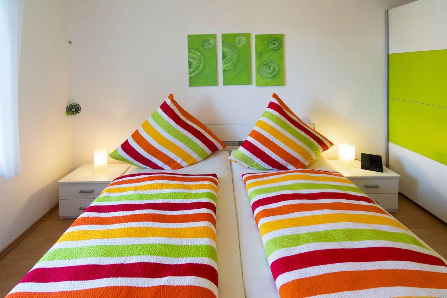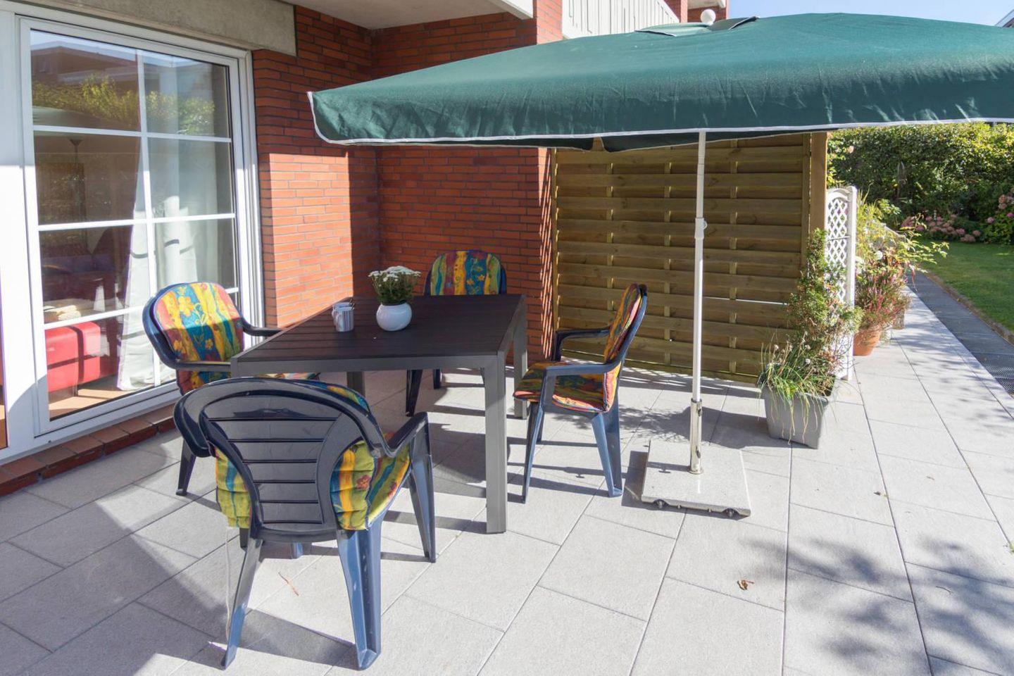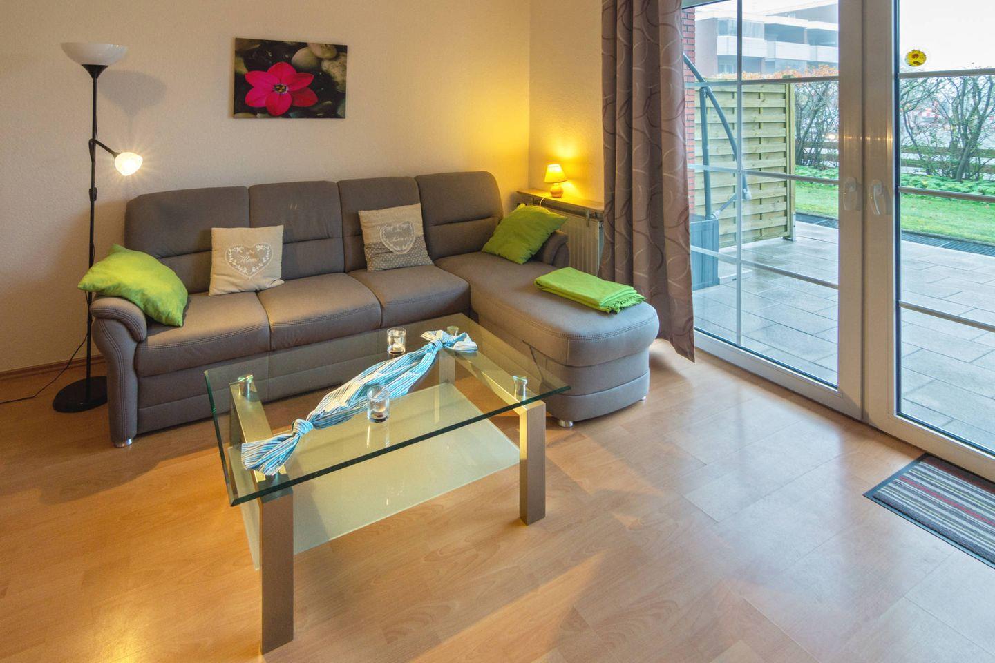 Die moderne Erdgeschosswohnung befindet sich in zentraler Lage, nur ca. 5 Fußminuten vom Ortskern und ca. 15 Minuten vom Strand entfernt. Sie bietet auf ca. 76 m² Platz für 4 Personen und verfügt über einen Wohnbereich mit integriertem Essplatz, eine voll ausgestattete Küche, zwei Schlafzimmer (eins mit Doppelbett, das andere mit zwei Einzelbetten) und ein Duschbad mit WC. Zur Wohnung gehört eine Terrasse und ein PKW-Stellplatz. Aus Rücksicht auf Allergiker sind Haustiere nicht erlaubt.