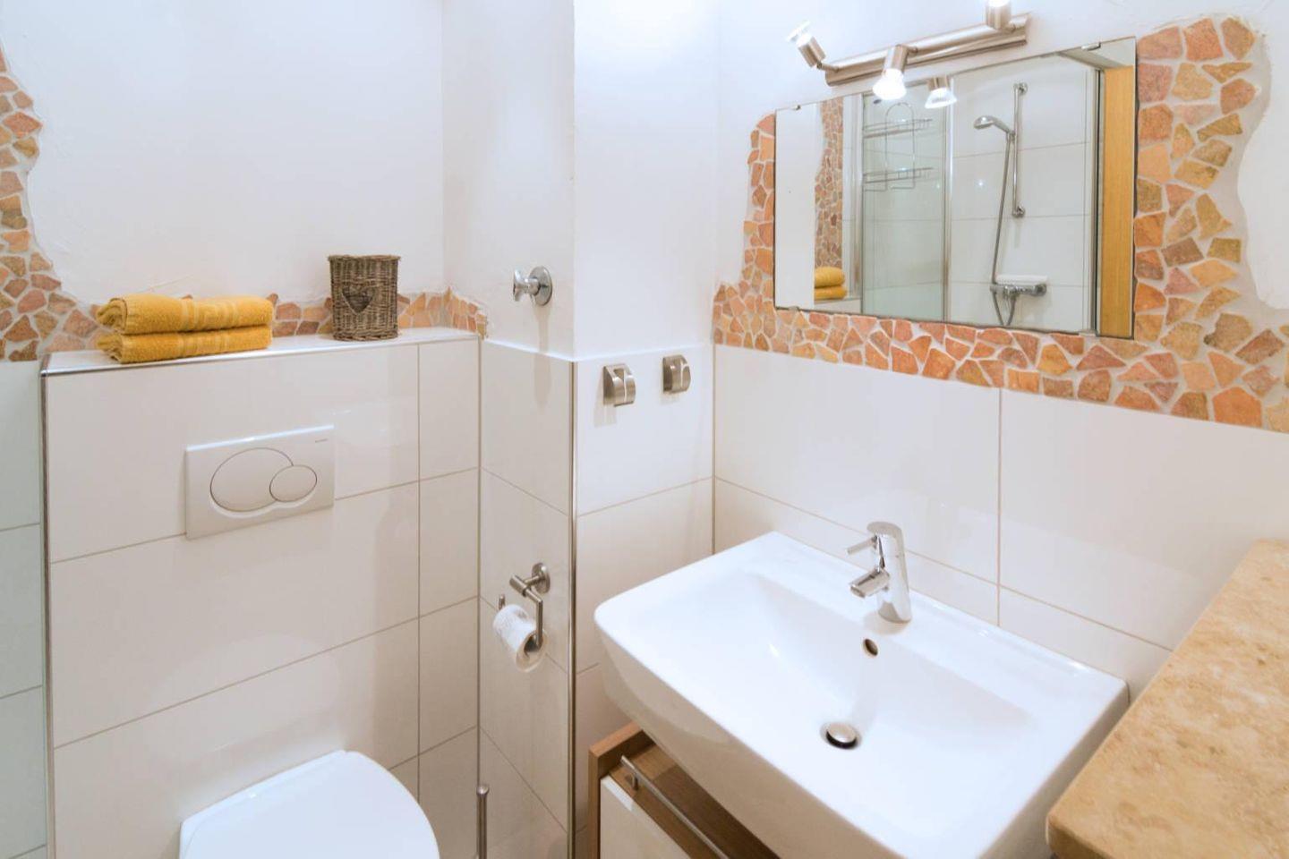 Eine besondere Atmosphäre bietet die großzügige Terrasse, ideal für entspannte Stunden im Freien. Der PKW-Stellplatz vor der Wohnung sorgt für zusätzlichen Komfort. WLAN ist kostenlos verfügbar und ermöglicht es, während des Aufenthalts mit der Welt verbunden zu bleiben. Für Familien mit kleinen Kindern stehen ein Kinderreisebett und ein Hochstuhl bereit.