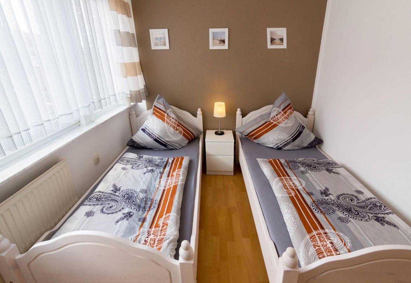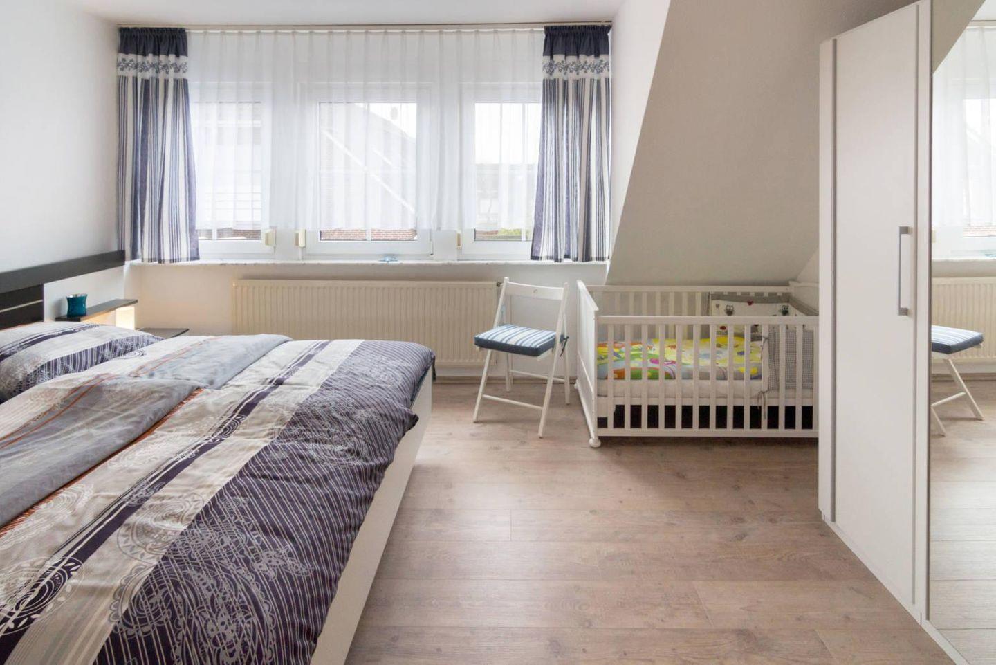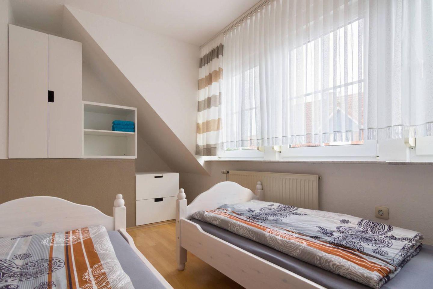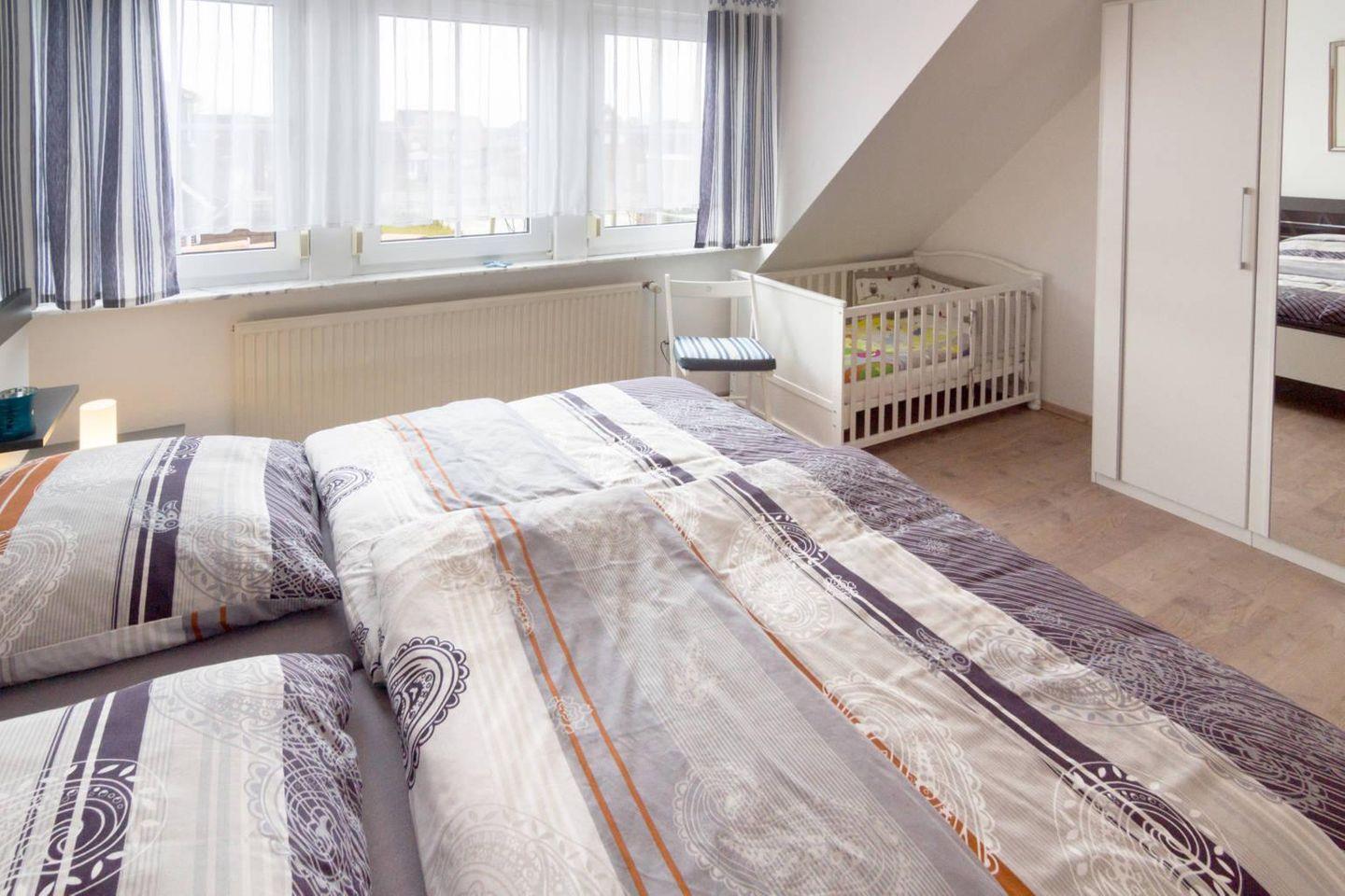Das ruhig gelegene und dennoch zentrale Reihenhaus, in dem bis zu vier Personen und ein Kleinkind Platz finden, verfügt im Erdgeschoß über einen Wohn- und Essbereich, eine separate voll ausgestattete Küche und ein Gäste-WC. Im Obergeschoß befindet sich ein Schlafzimmer mit einem Doppelbett und Platz für ein Kleinkindbett, im weiteren Schlafzimmer befinden sich zwei Einzelbetten. Ebenfalls im Obergeschoss befindet sich das Duschbad mit WC. Zur Wohnung gehört eine eingezäunte Terrasse und ein eigener PKW-Stellplatz. Maximal zwei Hunde sind hier herzlich willkommen.