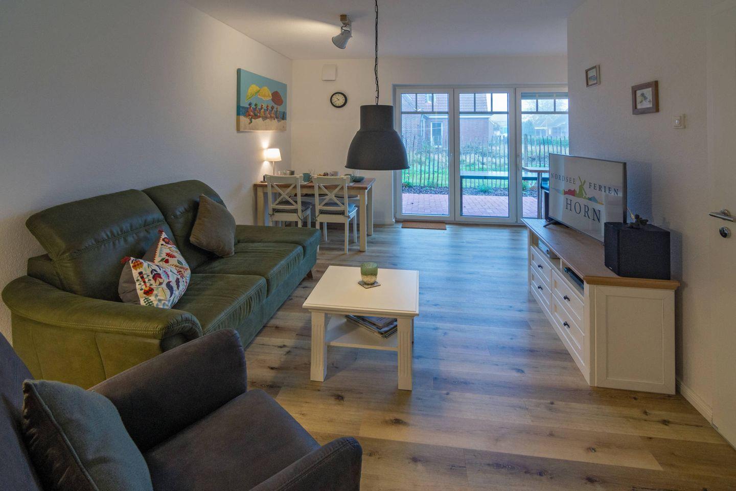 Mitte 2020 fertiggestellte Nichtraucher-Ferienwohnung im Küstenbadeort Dornumersiel. Ruhig gelegene Erdgeschoßwohnung eines 4-Parteien-Hauses.