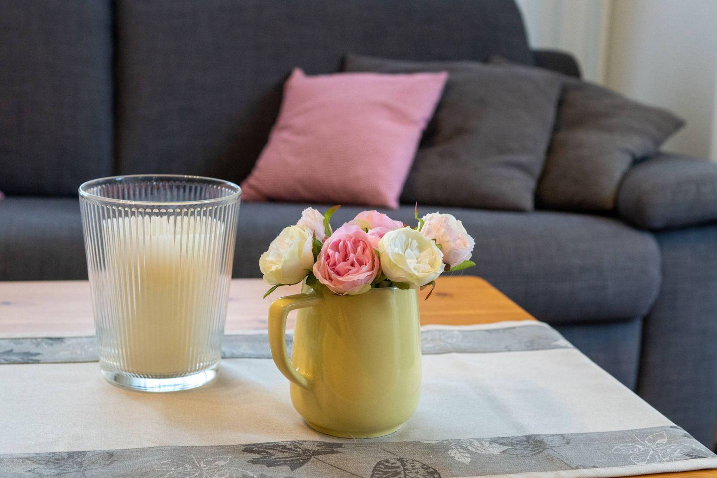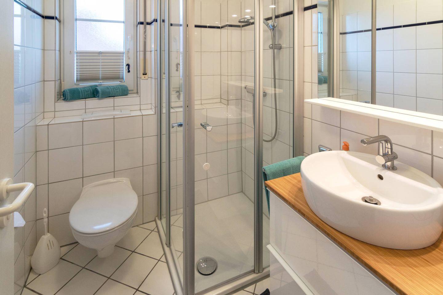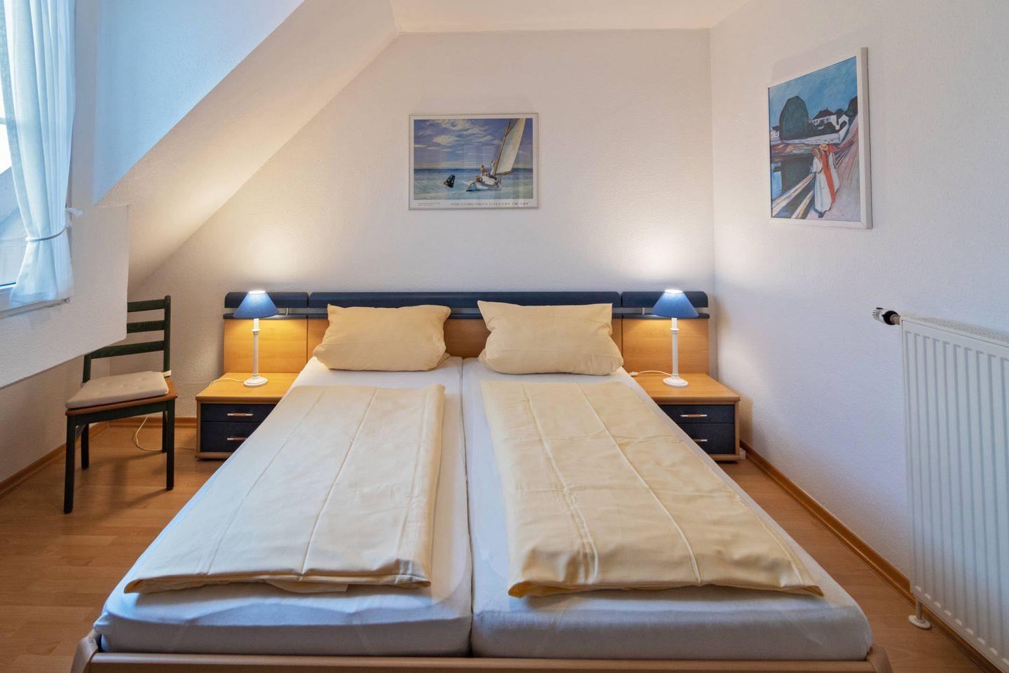 Die ruhig gelegene Doppelhaushälfte verfügt im Erdgeschoss über einen gemütlichen Wohn- und Essbereich mit voll ausgestatteter Küche, ein Gäste-WC und einen Abstellraum. Im Obergeschoss befinden sich zwei Schlafzimmer und ein Duschbad mit WC. Ein Schlafzimmer ist mit einem Doppelbett ausgestattet und bietet Platz für das Kleinkindbett, im zweiten Schlafzimmer befinden sich zwei Einzelbetten. Zum Haus gehört eine Terrasse und ein Abstellraum für zwei Fahrräder. Das WLAN steht Ihnen selbstverständlich kostenlos zur Verfügung.