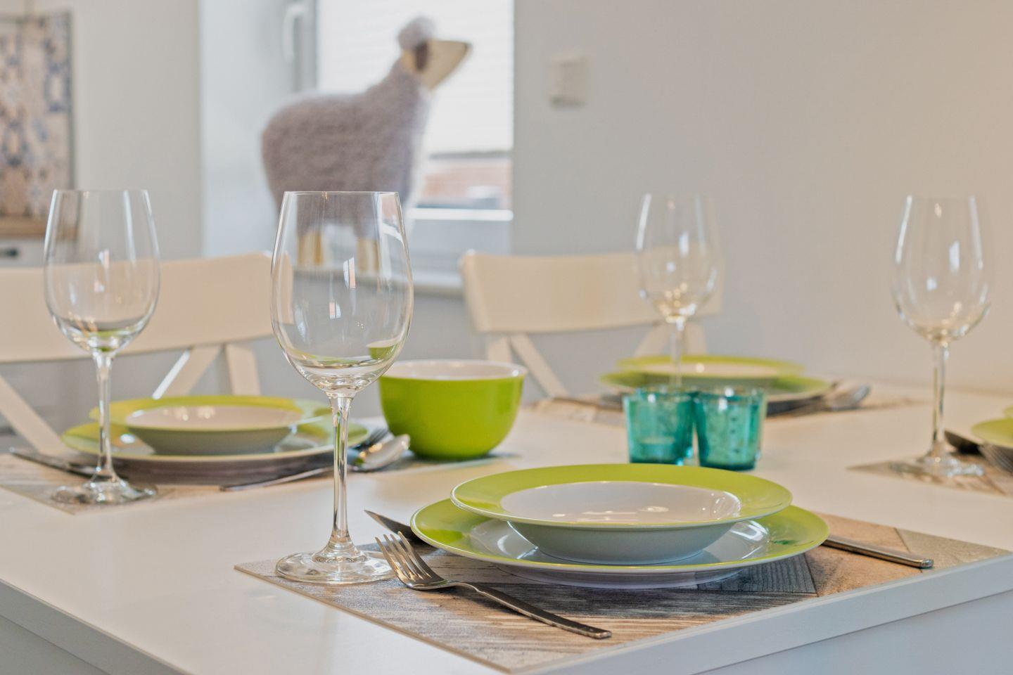 Das moderne Ferienhaus "To Huus" in Dornumersiel überzeugt mit seiner ruhigen, zentralen Lage und bietet Platz für 4 Personen und ein Kleinkind. Es verfügt über einen großzügigen Wohn- und Essbereich, eine voll ausgestattete Küche, zwei Schlafzimmer, ein Gäste-WC und ein modernes Duschbad. Zur Ausstattung gehören kostenloses WLAN, ein eingezäunter Garten mit Terrasse und ein PKW-Stellplatz. Haustiere sind nicht erlaubt.