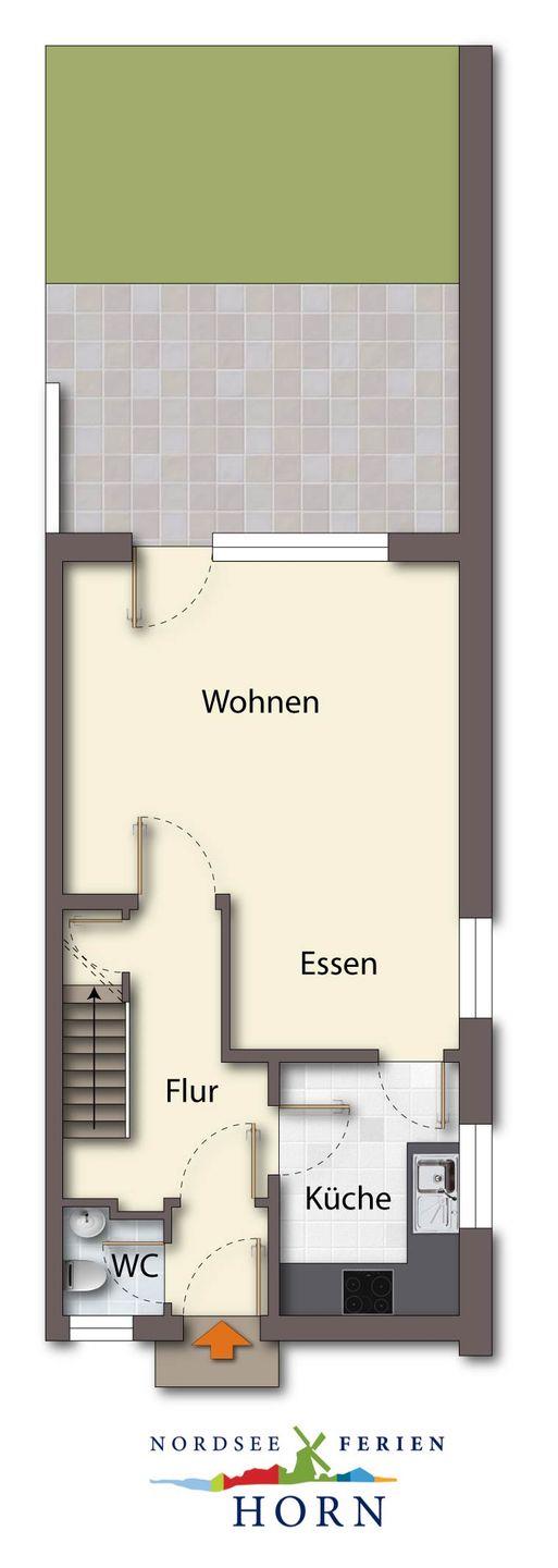 Das liebevoll eingerichtete Reihenhaus bietet im Erdgeschoss ein gemütliches Wohnzimmer mit Essbereich und Zugang zu Terrasse und Garten, eine separate, voll ausgestattete Küche sowie ein Gäste-WC. Im Obergeschoss erwarten Sie zwei Schlafzimmer, ein Duschbad und ein weiteres separates WC. Die zum Haus gehörende Terrasse mit Garten lädt zum Verweilen ein. Ihren PKW können Sie bequem auf dem hauseigenen Parkplatz abstellen.
