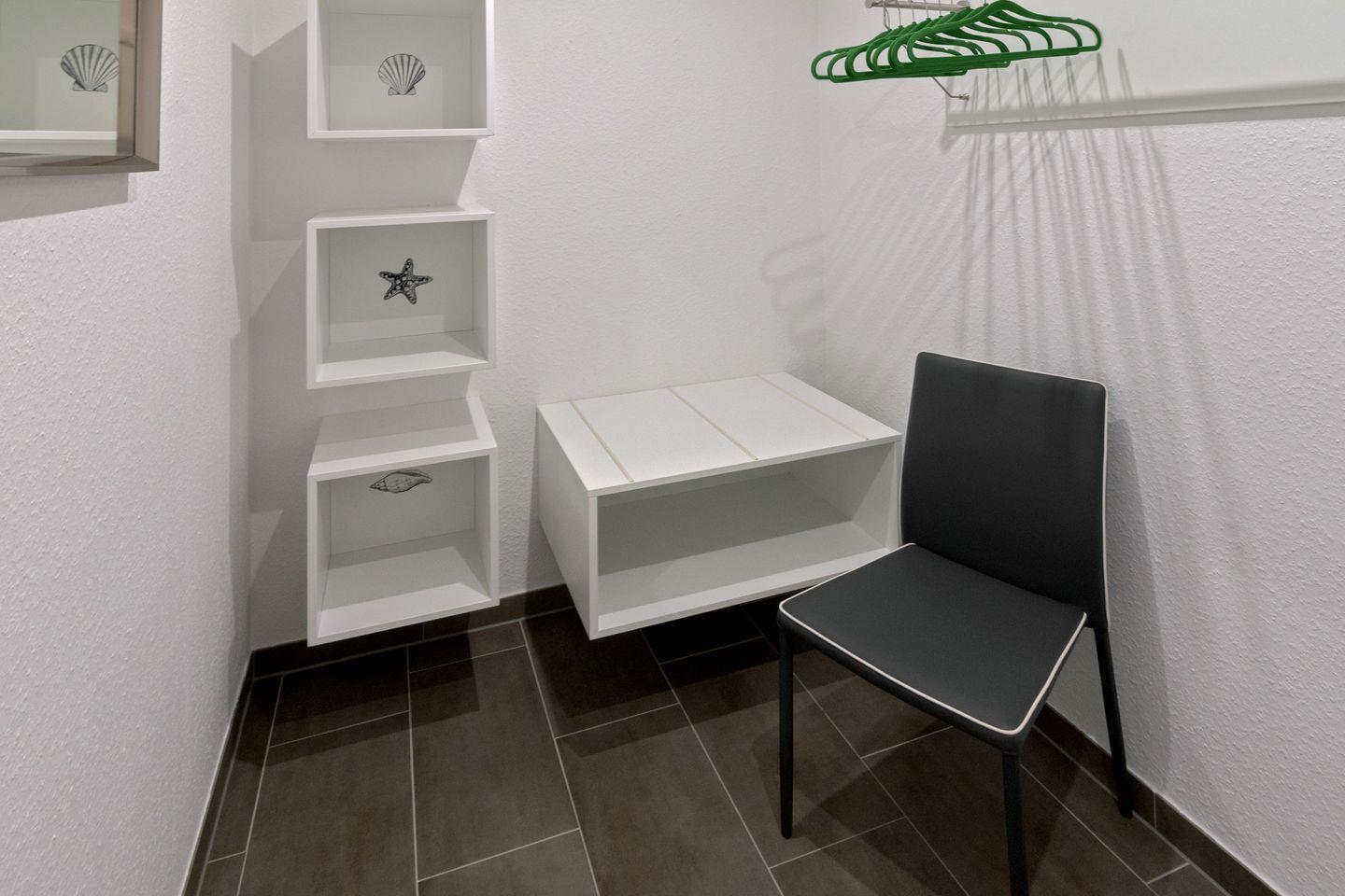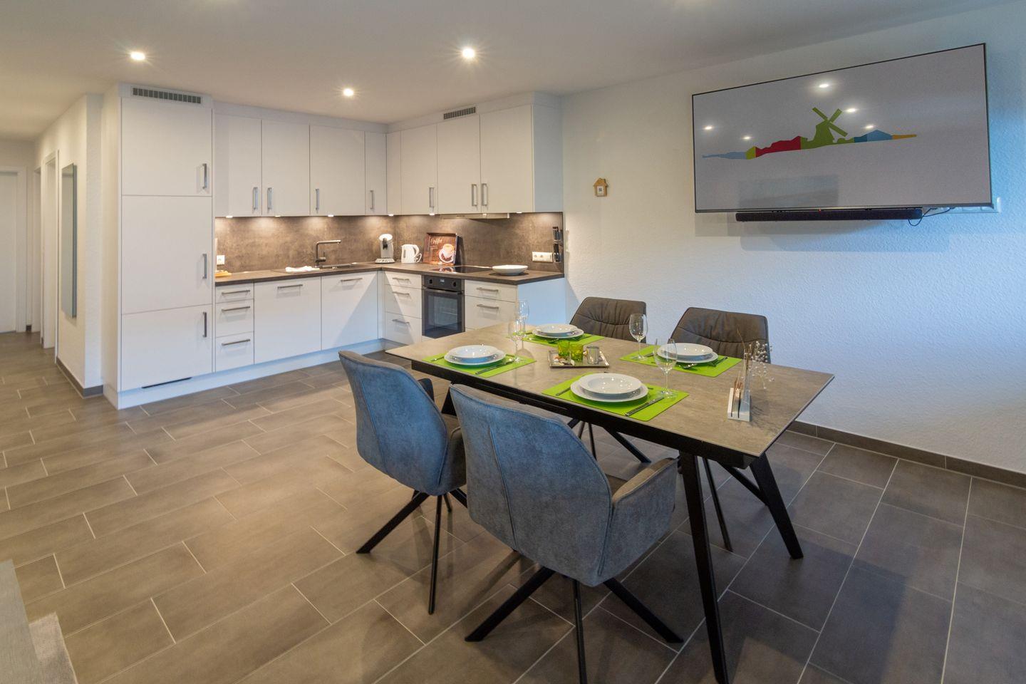 Die moderne und luxuriöse Ausstattung dieser Ferienwohnung lässt keine Wünsche offen. Der offene Wohn- und Essbereich lädt mit seiner gemütlichen Einrichtung zum Entspannen ein, während die voll ausgestattete Küche, inklusive Senseo-Maschine, alles bietet, was man für die Zubereitung köstlicher Mahlzeiten benötigt. Zwei liebevoll gestaltete Schlafzimmer, jeweils mit hochwertigen Boxspring-Ehebett (2 x 2 m), eigenem Smart-TV und elektrischer Verdunklungsmöglichkeit sorgen für erholsamen Schlaf und ungestörte Ruhe. Ein besonderes Highlight ist das separate Ankleidezimmer, das zusätzlichen Komfort bietet. Das elegante Duschbad, ausgestattet mit einer bodengleichen Dusche und WC, fügt sich harmonisch in das Gesamtbild ein. Praktischen Stauraum bietet ein zusätzlicher Abstellraum, während die kleinsten Gäste mit einem Kinderreisebett und einem Hochstuhl bestens versorgt sind.