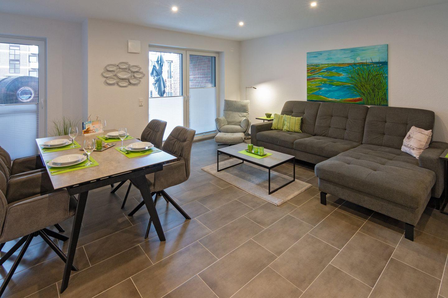 Stilvolle Neubau-Ferienwohnung im idyllischen Küstenort Dornumersiel, ideal für bis zu 4 Personen und ein Kleinkind. Ruhig gelegen, mit großzügiger Terrasse, Garten und gehobener Ausstattung: Smart-TV, Fußbodenheizung und WLAN inklusive. Ein PKW-Stellplatz sowie ein Fahrradabstellraum stehen zur Verfügung. Ein Hund ist herzlich willkommen. Ihr E-Auto können Sie bequem per EC-Karte direkt vor dem Haus laden.