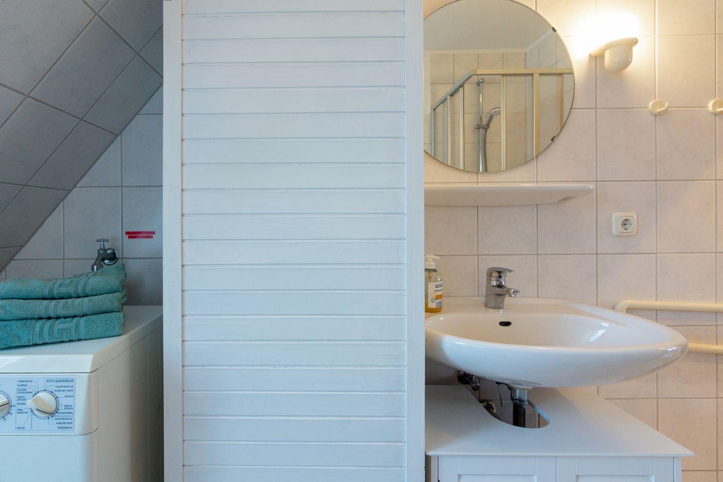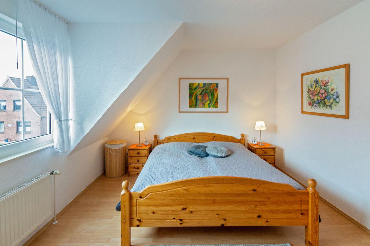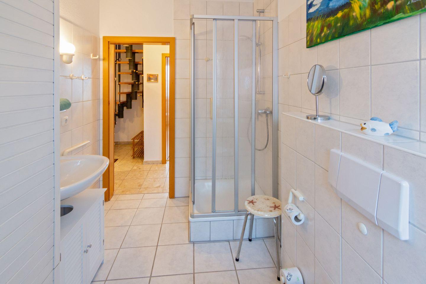 Im Erdgeschoss befindet sich der großzügige Wohn- und Essbereich, eine voll ausgestattete Küche sowie ein modernes Duschbad mit WC. Im Obergeschoss finden Sie zwei komfortable Schlafzimmer – eines mit einem Ehebett und eines mit zwei Einzelbetten. Zusätzlich gibt es ein weiteres Duschbad mit WC. Über eine platzsparende Raumspartreppe gelangen Sie von einem der Schlafzimmer in ein weiteres Zimmer ohne Tür, das mit einem Schlafsofa ausgestattet ist und zusätzlichen Schlafraum bietet.