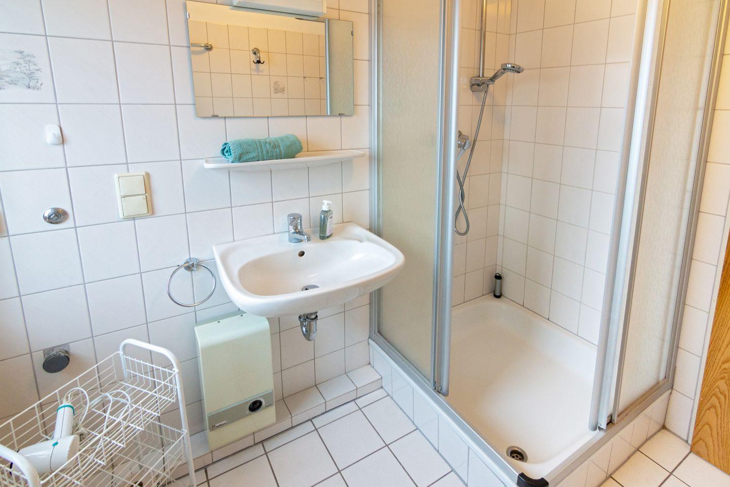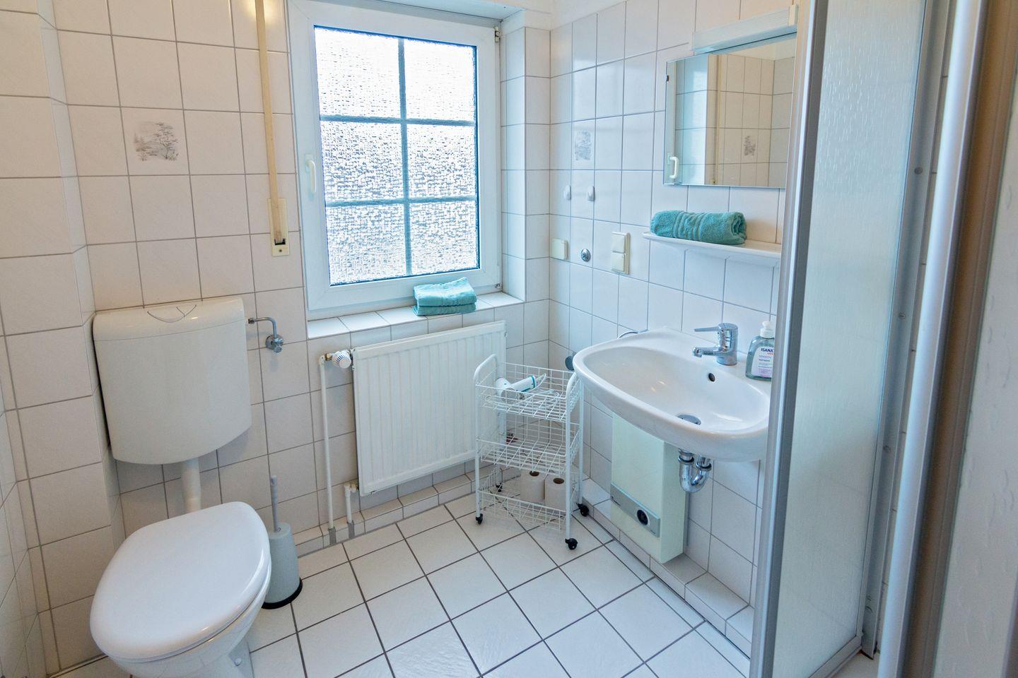 Das Duschbad mit WC und Fenster bietet neben einer Dusche auch genügend Stauraum für Ihre persönlichen Dinge.