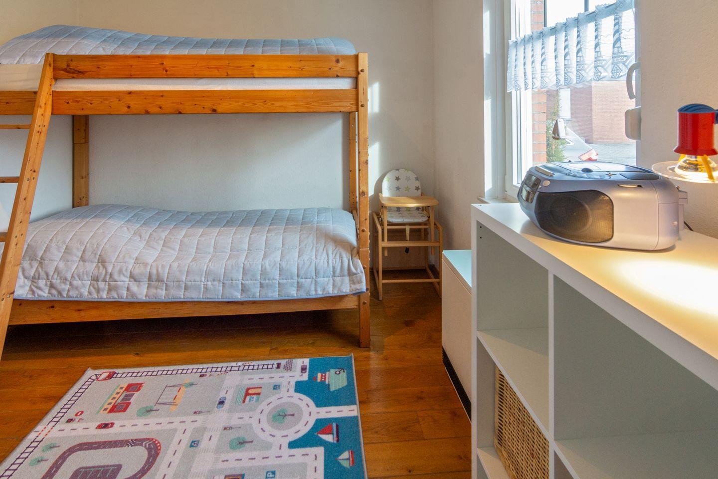 Der offene Wohnbereich mit Parkettboden lädt zum Entspannen ein – ob auf dem Sofa oder beim Essen mit Blick ins Grüne. Ein Kabel-TV und kostenloses WLAN stehen zur Verfügung. Die zwei Schlafzimmer – eines mit Doppelbett, eines mit Etagenbett – bieten erholsamen Schlafkomfort.