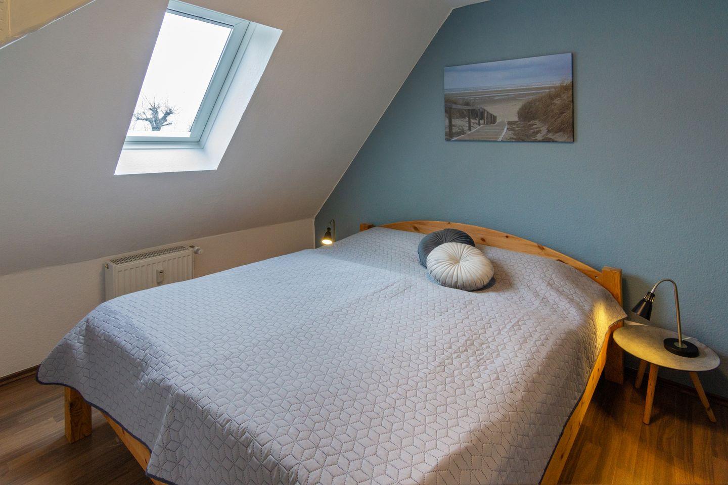 Die „Deichbrise“ verfügt über zwei komfortable Schlafzimmer mit modernem Laminatboden, die für erholsame Nächte sorgen. Ein Babyreisebett und ein Hochstuhl sind ebenfalls vorhanden, damit Sie sich um die Kleinsten nicht sorgen müssen. Das Badezimmer ist mit einer Dusche, einem Haartrockner und allen notwendigen Annehmlichkeiten ausgestattet.