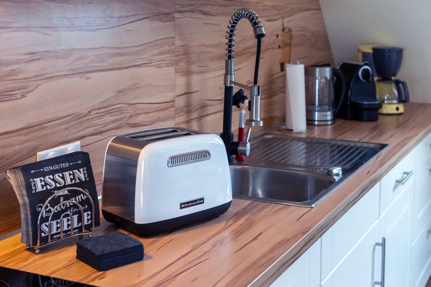 Mit einer Größe von 64 m² bietet das offene Wohnkonzept eine harmonische Verbindung zwischen Küche und Wohnzimmer. Hier können Sie in der voll ausgestatteten Küche mit hochwertigen Geräten, wie einem Cerankochfeld, Backofen, Spülmaschine, Mikrowelle und sogar einer Nespresso-Maschine, kulinarische Köstlichkeiten zaubern. Genießen Sie die Zeit beim gemeinsamen Kochen und Essen am Esstisch oder machen Sie es sich auf dem gemütlichen Sofa bequem, während Sie den Fernseher mit Satellitenanschluss oder Ihre Lieblingsmusik auf dem CD-Player hören.