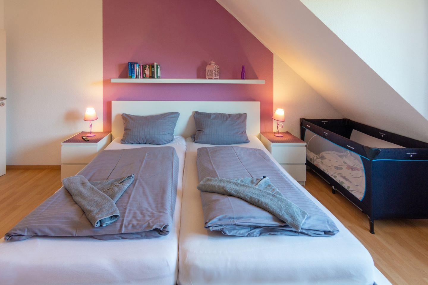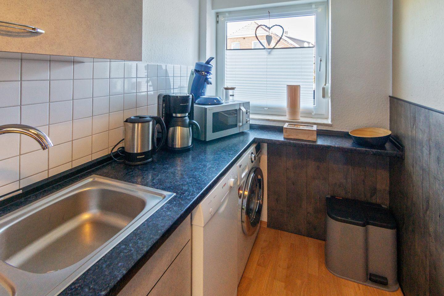 Die Unterkunft erstreckt sich über zwei Etagen und verfügt insgesamt über drei Zimmer, darunter zwei geschmackvoll eingerichtete Schlafzimmer mit Laminatfußboden. Das Erdgeschoss beherbergt einen lichtdurchfluteten Wohnbereich, in dem Sie auf einer komfortablen Couch die Zeit mit einem Film oder einer der bereitgestellten Spiele verbringen können. Ein Fernseher mit Satellitenanschluss sowie ein DVD-Spieler stehen Ihnen ebenfalls zur Verfügung. Der offen gestaltete Essbereich lädt zu gemeinsamen Mahlzeiten ein, während Sie die gut ausgestattete, geschlossene Küche mit modernen Geräten genießen können. Hier finden Sie alles, was Sie für die Zubereitung köstlicher Gerichte benötigen, einschließlich einer Cerankochstelle, einem Backofen, einer Spülmaschine und einer Senseo-Espressomaschine.