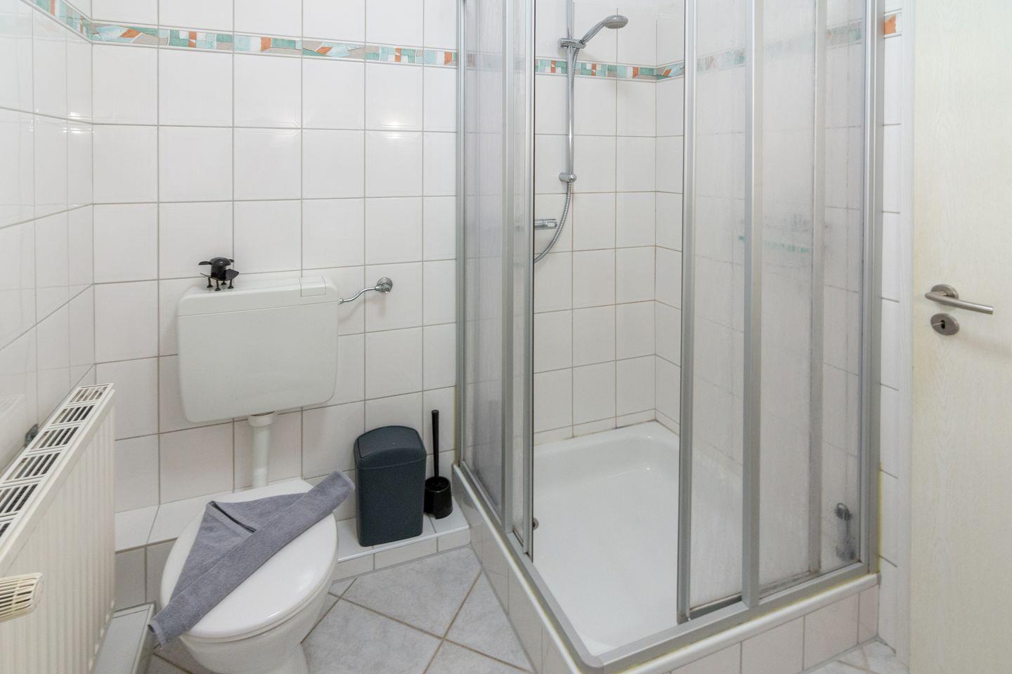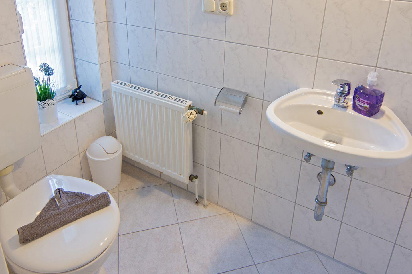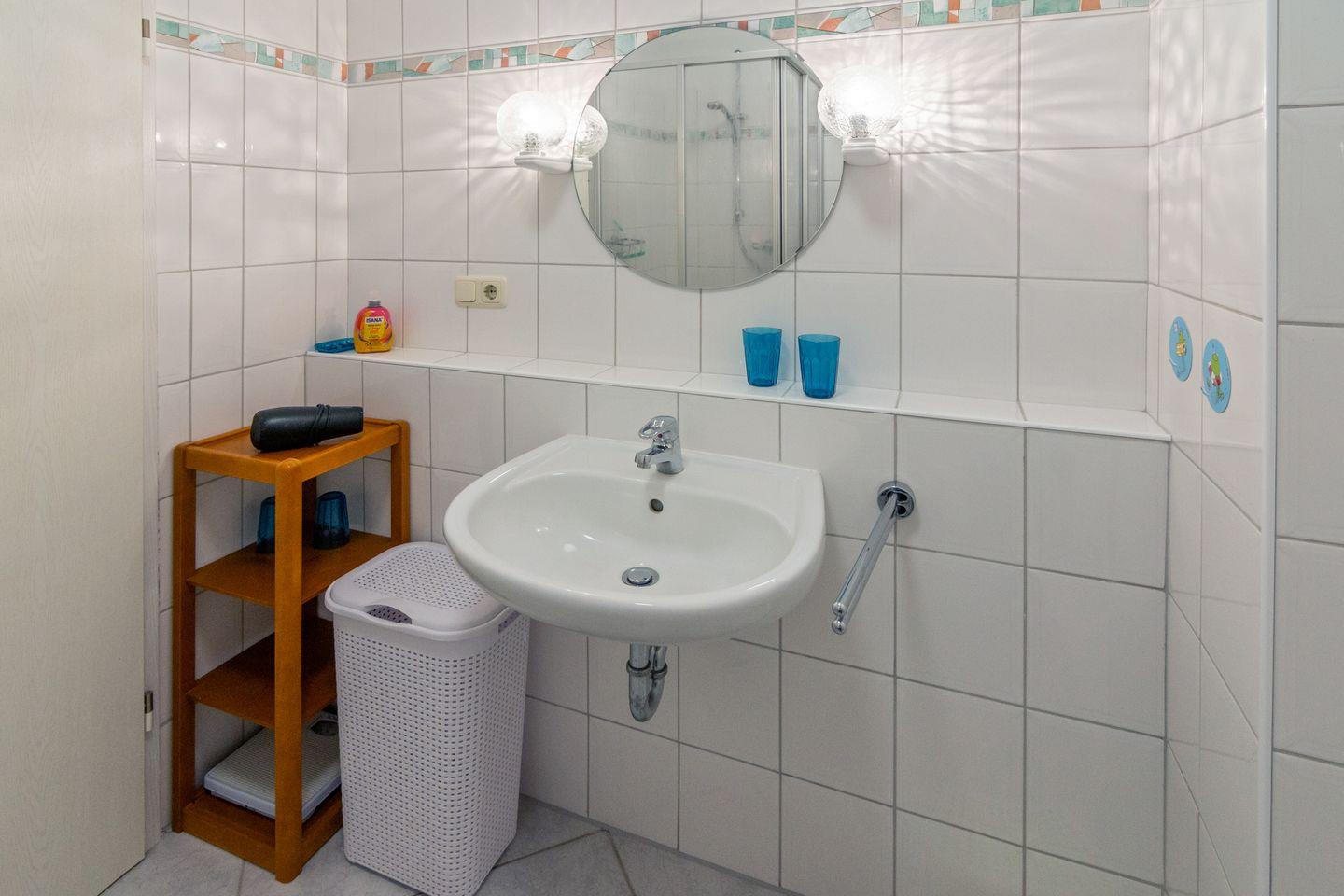 Das Badezimmer der Unterkunft ist zweckmäßig eingerichtet und verfügt über eine Dusche, ein Waschbecken und ein WC. Ein zusätzliches Gäste-WC sorgt für mehr Komfort und Privatsphäre während Ihres Aufenthalts. Praktische Annehmlichkeiten wie eine Waschmaschine und Trockner gewährleisten, dass Sie auch im Urlaub gut versorgt sind. Ein kostenloser Internetzugang per WLAN sowie ein privater Parkplatz runden das Angebot ab.