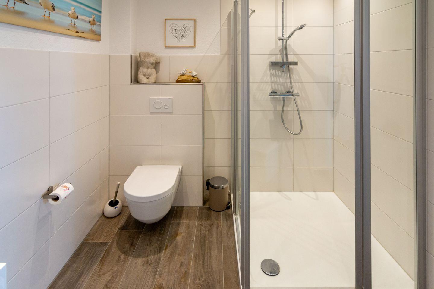 Die 67?m² große, helle Oberwohnung erstreckt sich über zwei Etagen und bietet Platz für bis zu 3 Erwachsene. Sie verfügt über ein geschmackvoll eingerichtetes Schlafzimmer mit modernem Bad en Suite mit bodengleicher Dusche und ein weiteres Schlafzimmer im ausgebauten Dachgeschoss mit Schlafsofa mit einem weiteren kleinen Duschbad en Suite im ausgebauten Dachgeschoss. Alle Zimmer sind mit elektrischen Rollläden ausgestattet. Die gesamte Wohnung ist rauchfrei.