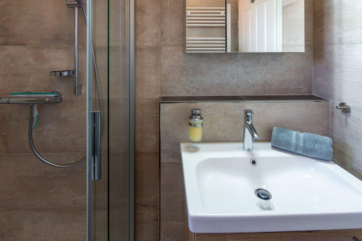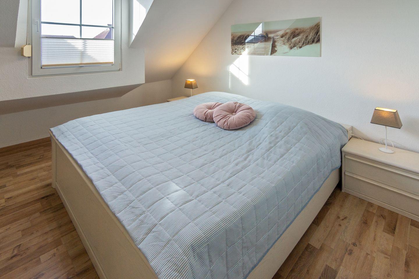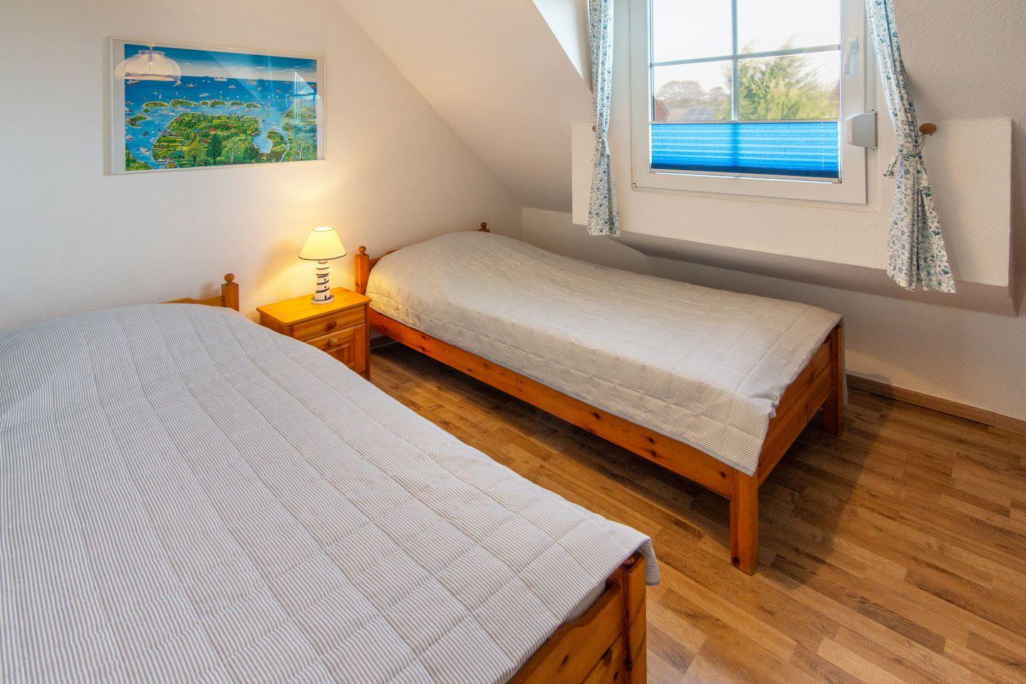 Das Haus erstreckt sich über zwei Etagen mit drei Zimmern, darunter zwei separate Schlafzimmer mit Laminatboden. Ein modernes Duschbad mit Dusche und ein zusätzliches Gäste-WC sorgen für Komfort. Im gemütlichen Wohnzimmer mit Sofa, Kamin, TV, DVD-Player und HiFi-Anlage lässt es sich wunderbar entspannen – Spiele, Bücher und kostenloses WLAN sind vorhanden. Ein weiterer Fernseher steht im Kinderzimmer bereit.