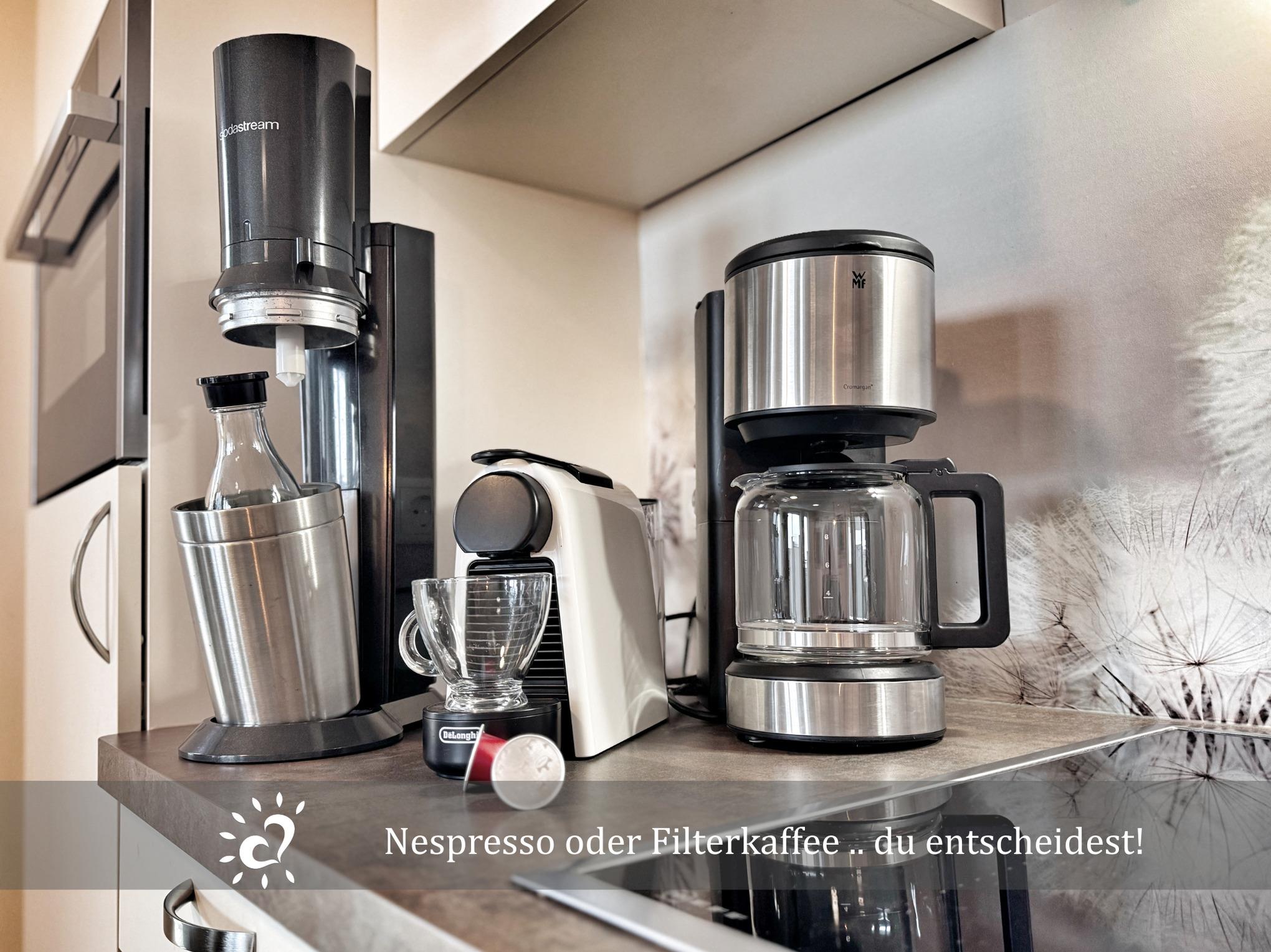 Die hochwertig ausgestattete Küche mit Nespresso-Maschine, Mikrowelle und Eisfach macht Selbstversorgen besonders einfach und angenehm.