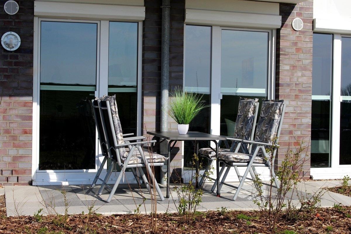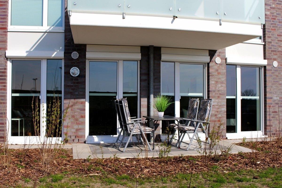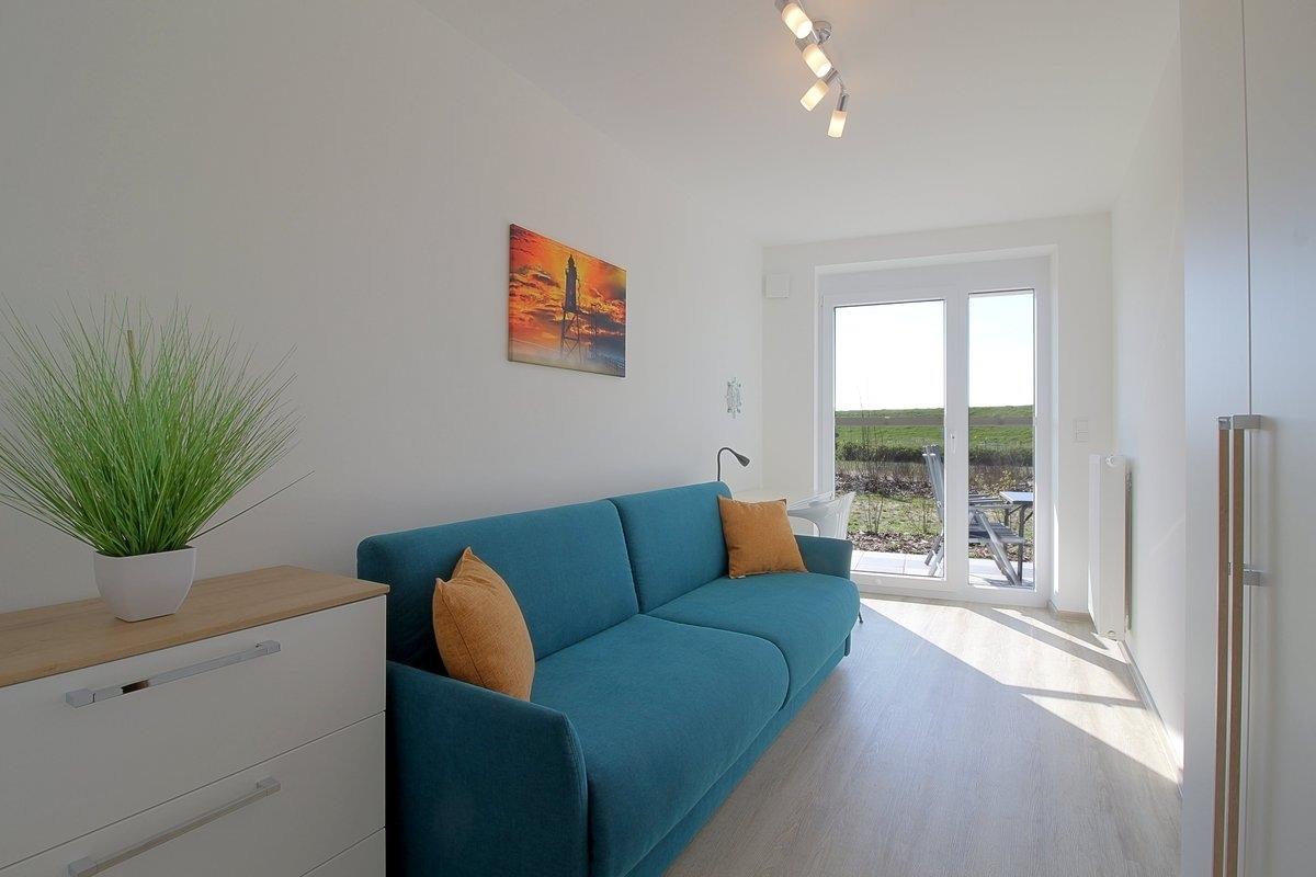 Die sonnige Wohnung liegt im Hochparterre mit einer Terrasse mit Deichblick und bietet Platz für 3 Personen + Kleinkind.