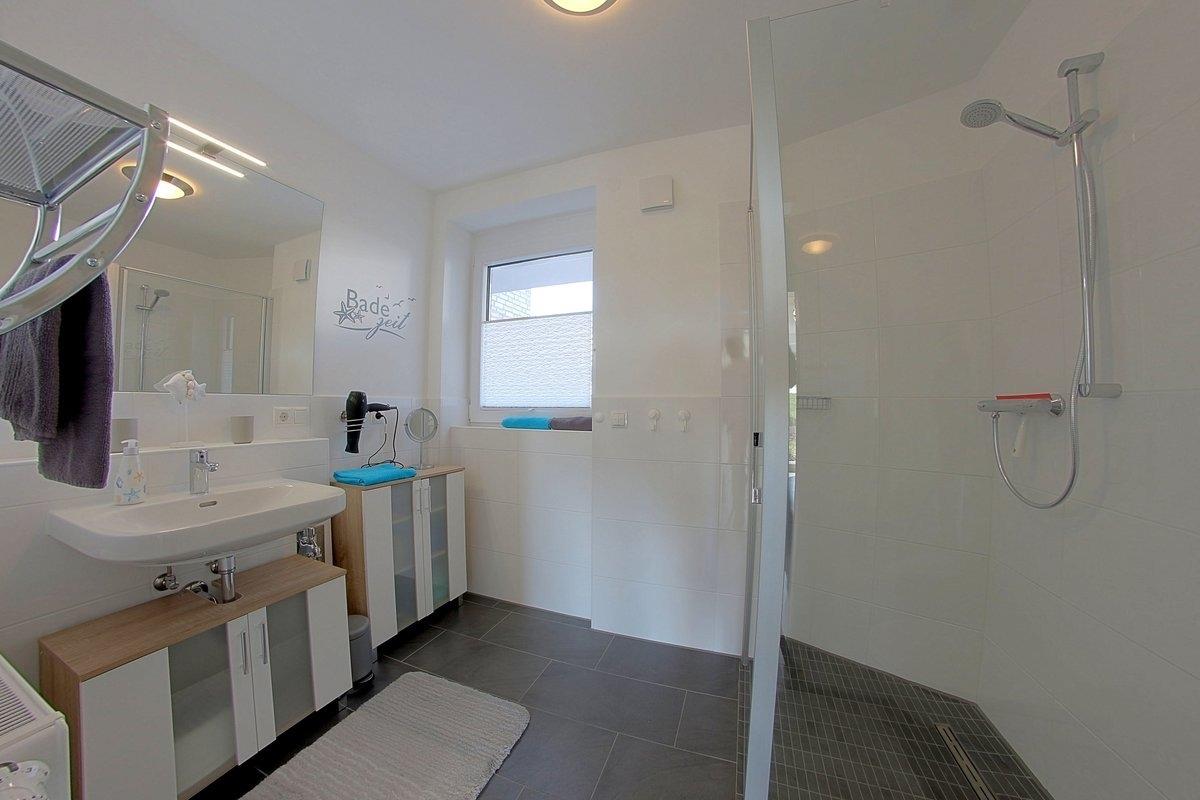 2 Schlafzimmer, eines mit Doppelbett (1,80 x 2,00 m) und 1 Schlafzimmer mit Bettsofa mit separater Matratze (1,40 x 2,00 m), sowie ein Duschbad mit bodengleicher Dusche und Fenster stehen hier zur Verfügung. Ein Babyreisebett steht zur Verfügung