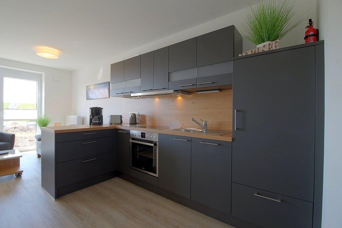Ein gemütlicher offener Wohn-, Ess- und Küchenbereich mit bequemer Sitzecke, hochwertiger Einbauküche mit Geschirrspüler und Smart-TV werden Ihnen den Aufenthalt angenehm machen, damit Sie im Urlaub auf keinerlei Komfort verzichten müssen. Insektenschutztüren sorgen für mückenfreie Zonen. Terrasse mit Sichtschutz zum Nachbarn.