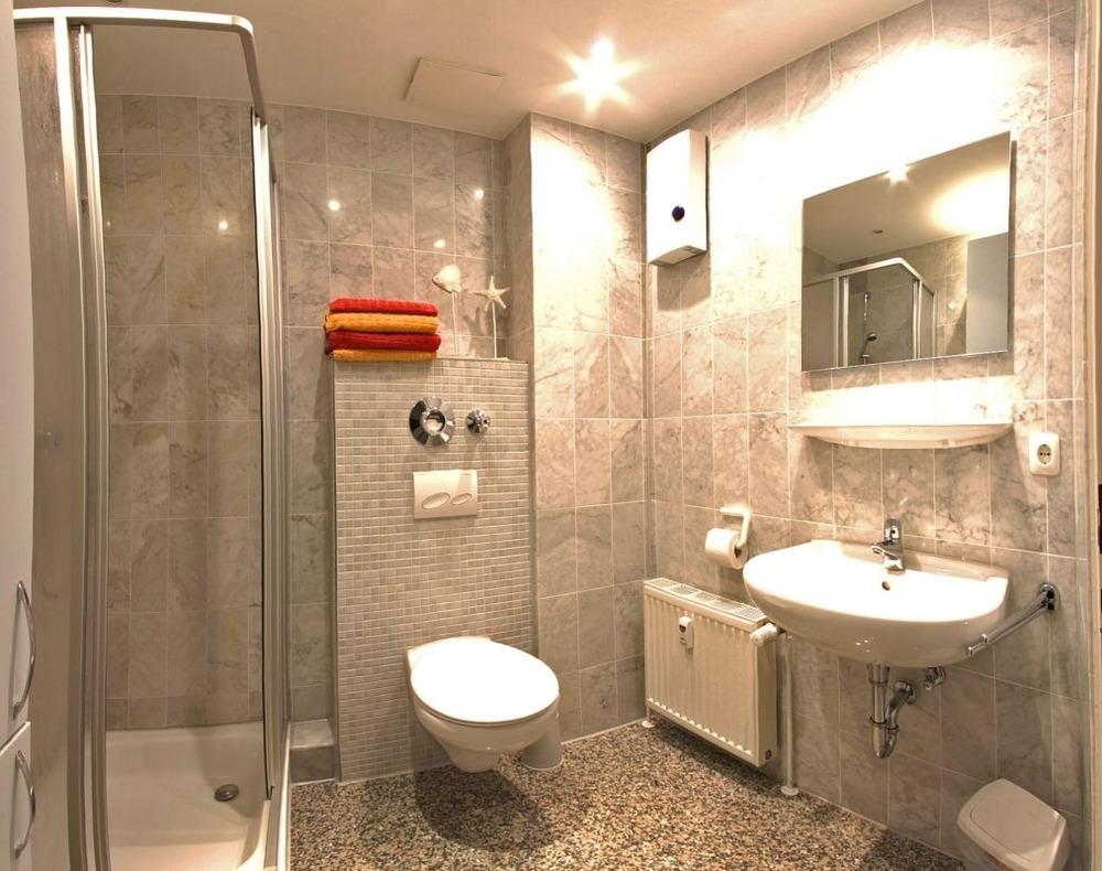 Das Appartement verfügt über eine Terrasse. Das Bad ist zeitlos modern.