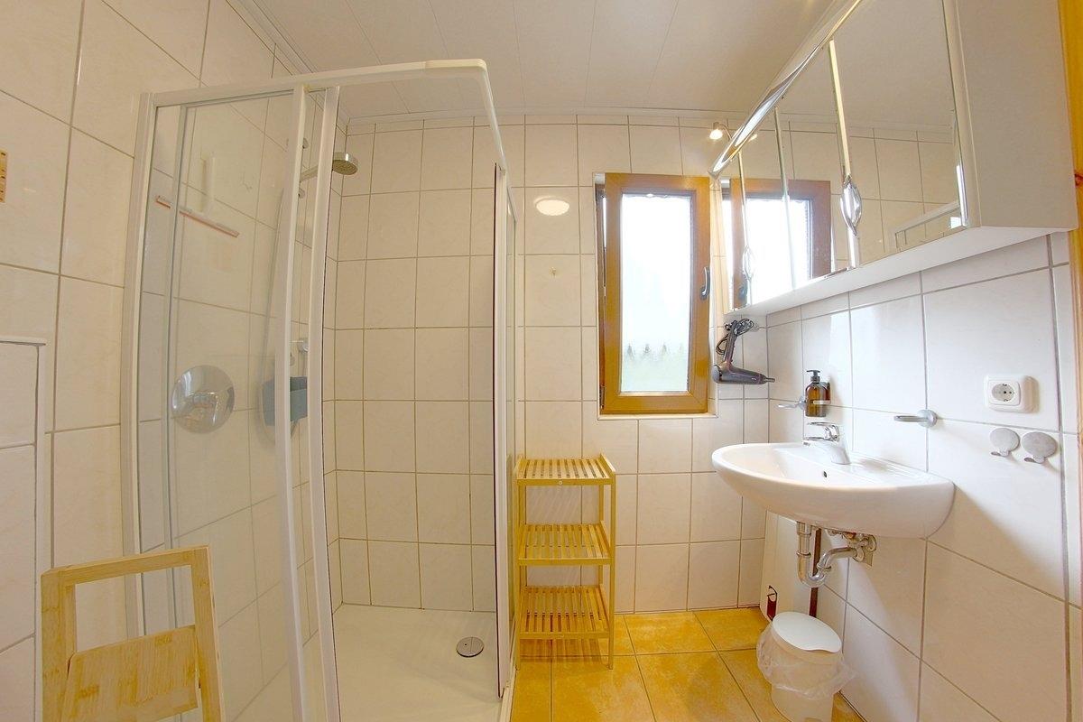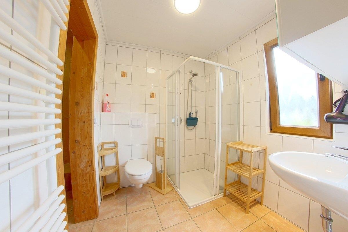 Im EG befindet sich ein Schlafzimmer mit Doppelbett und Internetradio und ein Bad mit Sauna mit Münzeinwurf. Alle Schlafzimmer und die Terrassentür haben Insektenschutz.