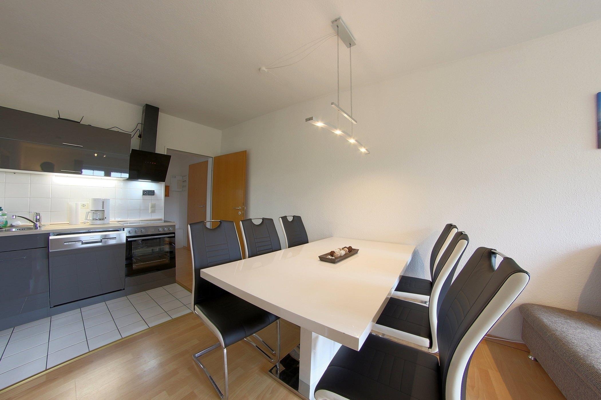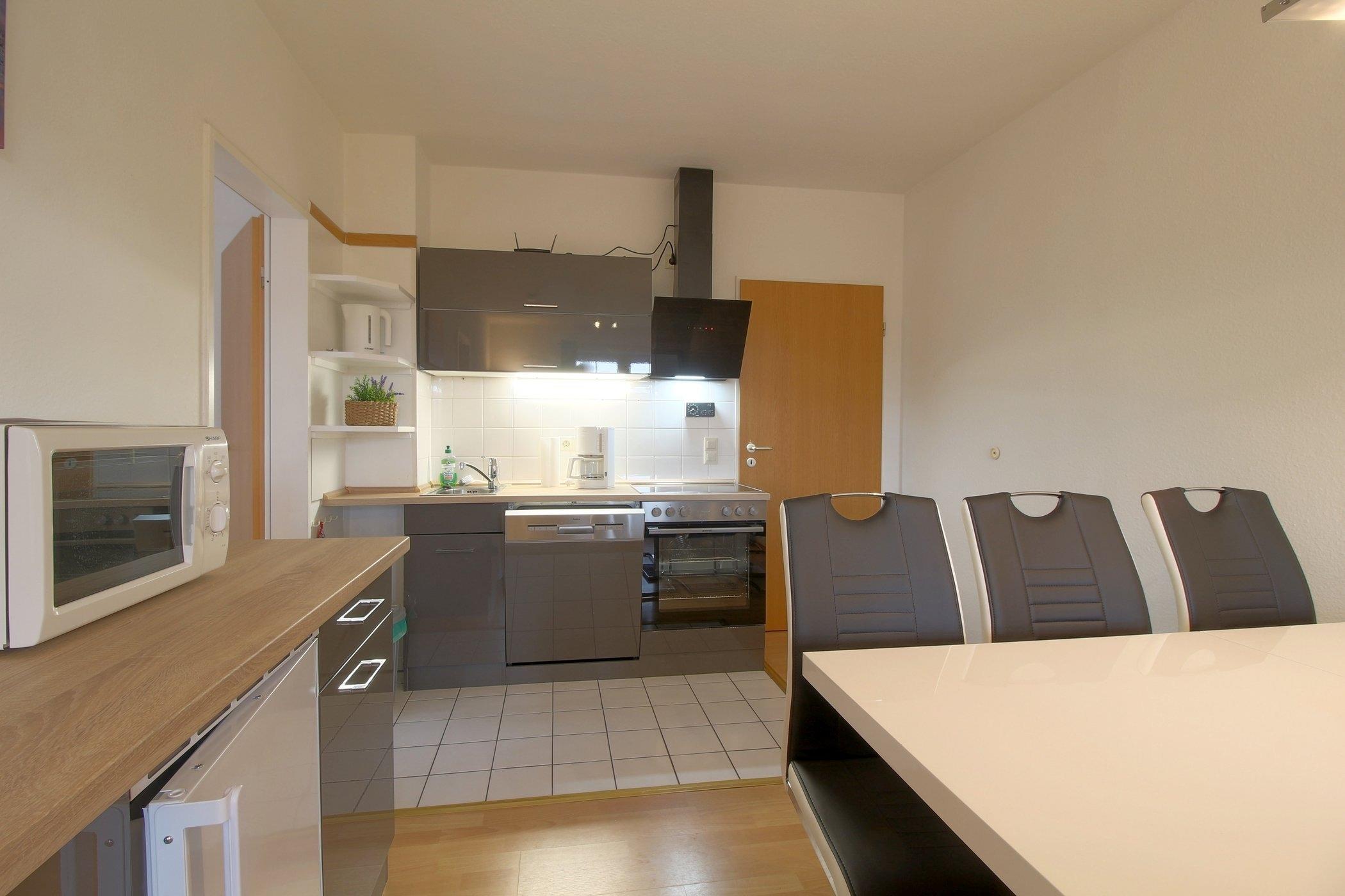 Die Wohnung verfügt über einen offen Wohn- Ess- und Küchenbereich mit komplett ausgestatteter Küchenzeile mit Geschirrspüler. Hier können Sie gemeinsam mit Ihrer Familie leckere Gericht zaubern und gemeinsame Mahlzeiten genießen. Ein Schlafzimmer mit Doppelbett (1,60x2,00m) und ein Schlafzimmer mit 2 Einzelbetten sorgen für erholsamen Schlaf.