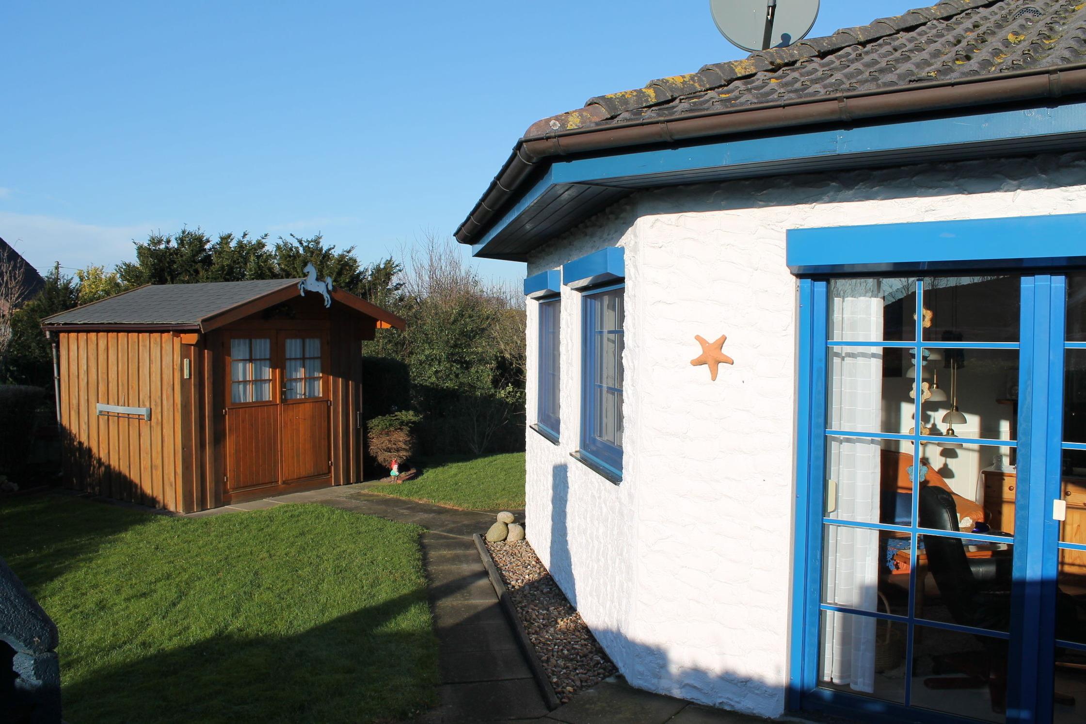 Dieses gemütlich eingerichtete Haus verfügt über einen Wohnbereich mit Flachbild-TV, Sitzecke, Essplatz und separater Küche mit E-Herd mit Backofen, Kühlschrank mit Gefrierfach, Kaffemaschine, Toaster, Mikrowelle, Waschmaschine und komplettem Geschirr. überdachte Terrasse mit Strandkorb, Grill und Gartenhaus mit Fahrrädern(keine Kinderfahrräder) stehen unseren Gästen zur Verfügung. Ein kleiner Hund darf mitreisen. Kostenloses W-Lan gibt es natürlich auch.