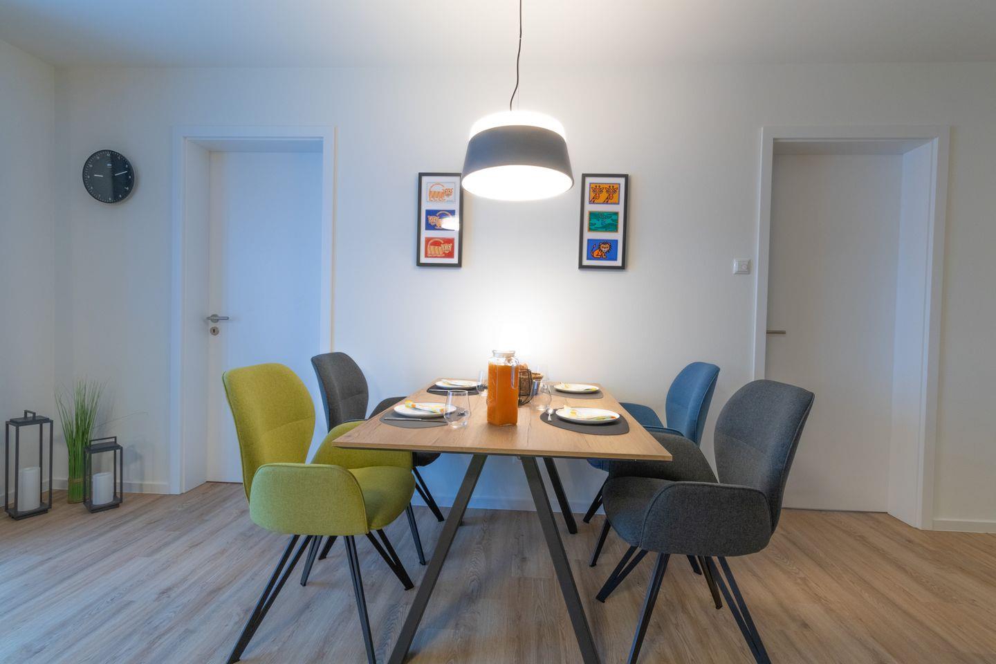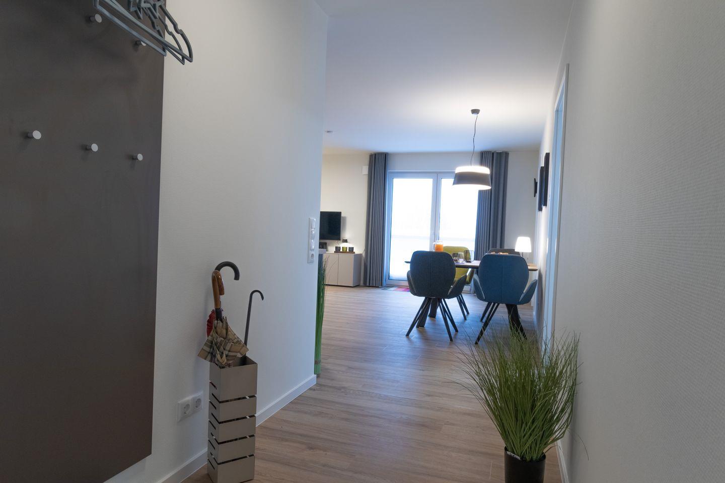Der Aufzug bringt dich bequem in die 2. Etage. Fahrräder und Sportgeräte verstaust du sicher im abschließbaren Fahrradraum. Der Parkplatz direkt am Haus gehört exklusiv zur Wohnung. Ein kontaktloser Check-in per Schlüsseltresor sorgt für eine flexible und unkomplizierte Anreise.