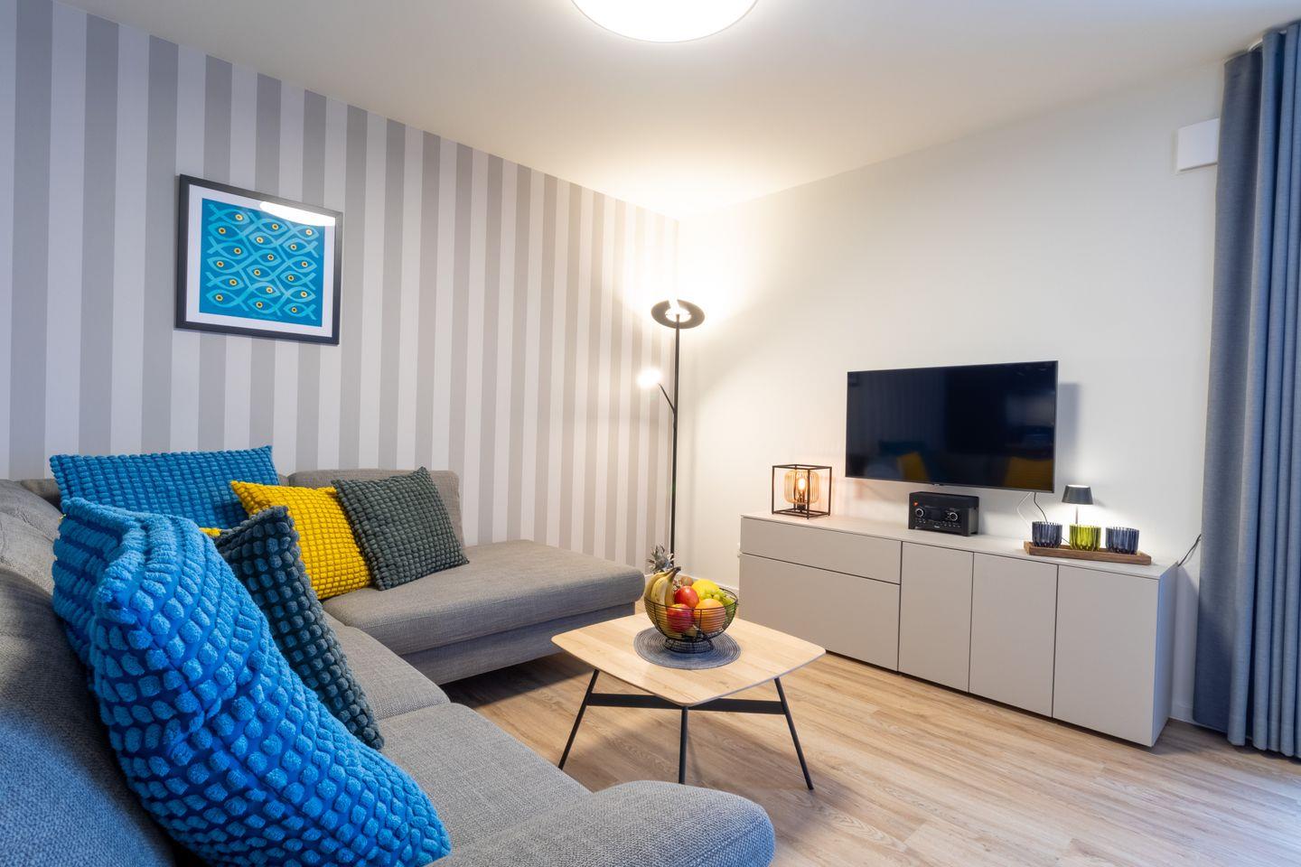 Es stehen zwei Schlafzimmer zur Verfügung: ein großzügiges Schlafzimmer mit Doppelbett und TV sowie ein weiteres Schlafzimmer mit einem Doppelbett – ideal für Kinder oder Freunde. Hochwertige Matratzen sorgen für erholsamen Schlaf.