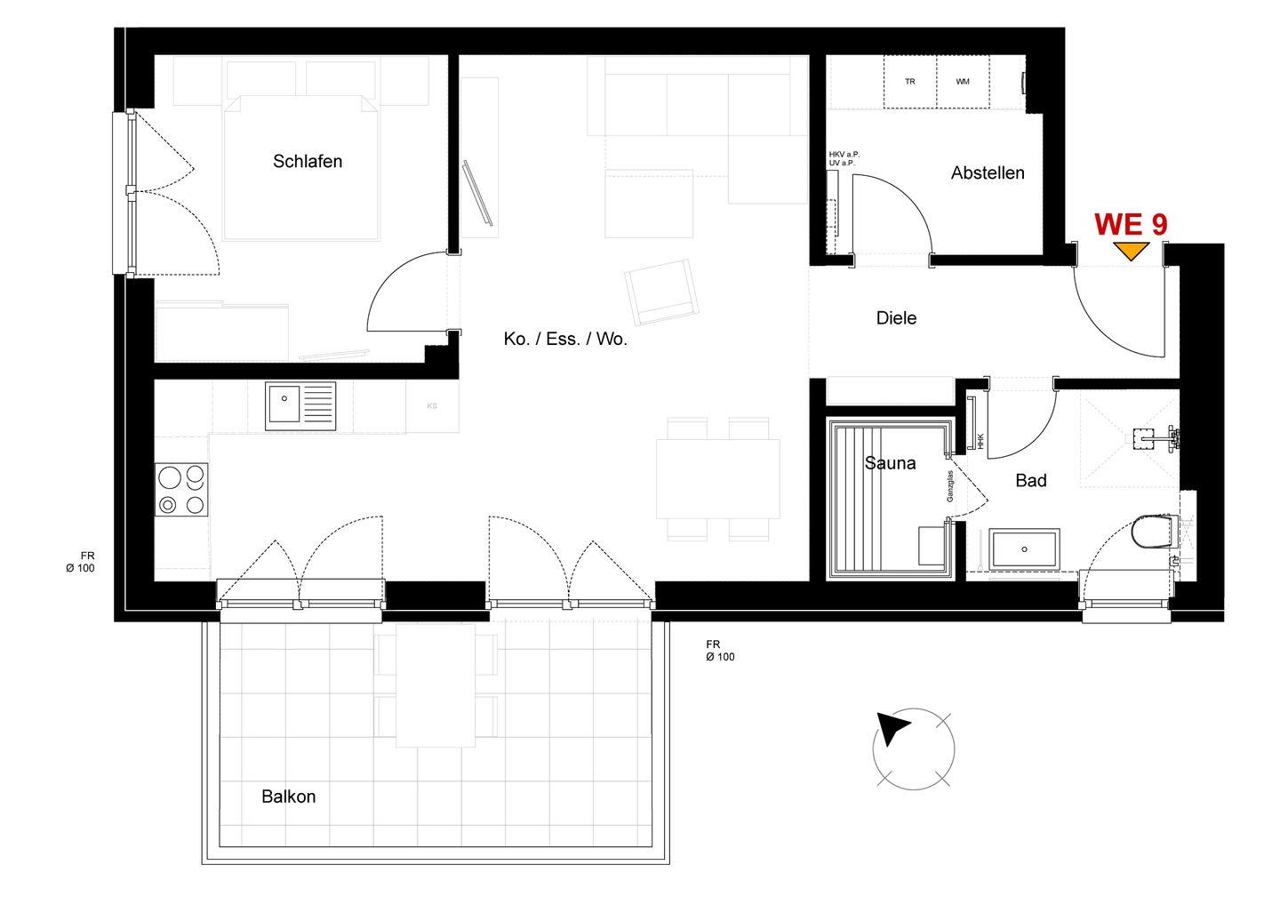 Ein Aufzug bringt dich bequem in die Etage deiner Wohnung. Du parkst direkt am Haus und hast Zugang zu einem abschließbaren Fahrradraum. Der Check-in erfolgt bequem und kontaktlos über einen Schlüsseltresor. WLAN ist selbstverständlich inklusive.