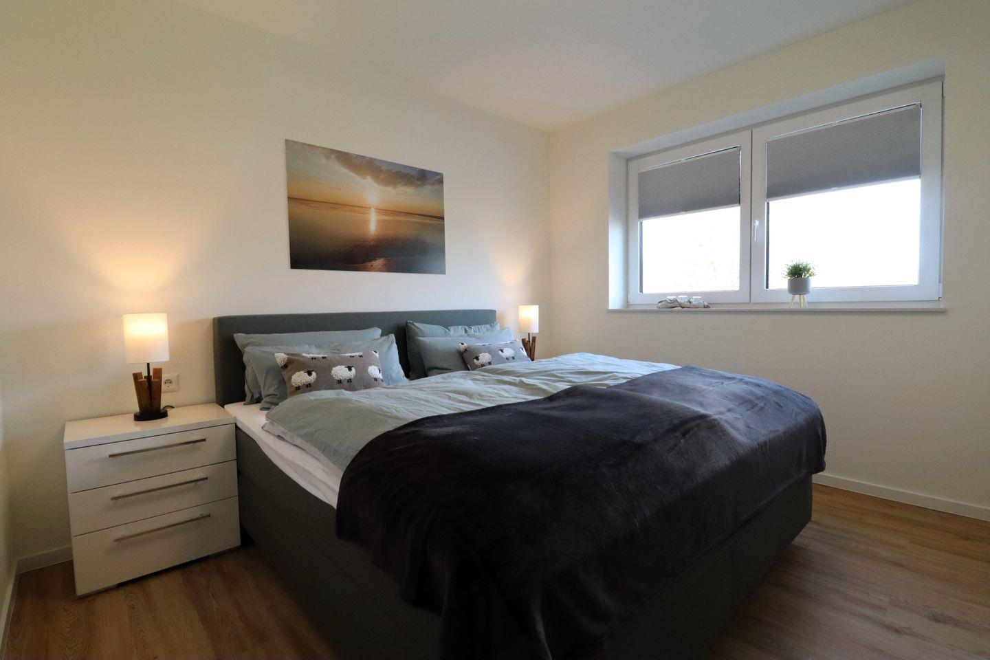 Im Schlafzimmer erwartet euch ein komfortables Boxspringbett (180?×?200?cm) mit hochwertigen Matratzen für erholsame Nächte. Verdunkelungsplissees sorgen für eine angenehme Schlafatmosphäre – perfekt für Langschläfer.