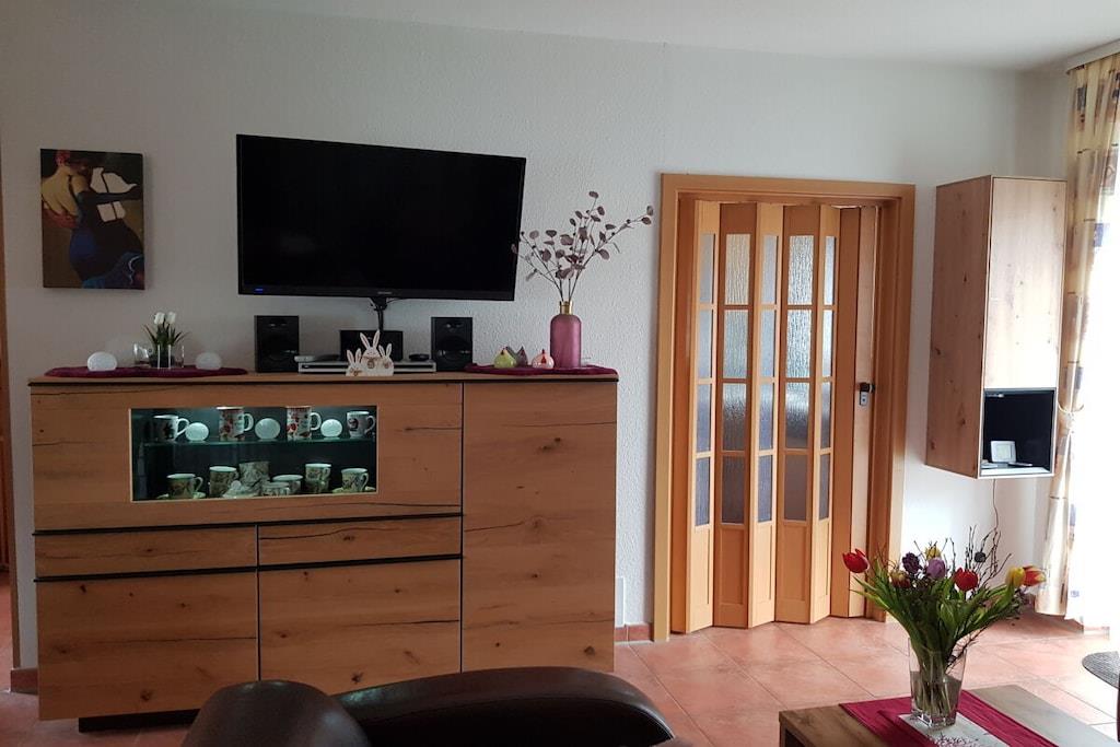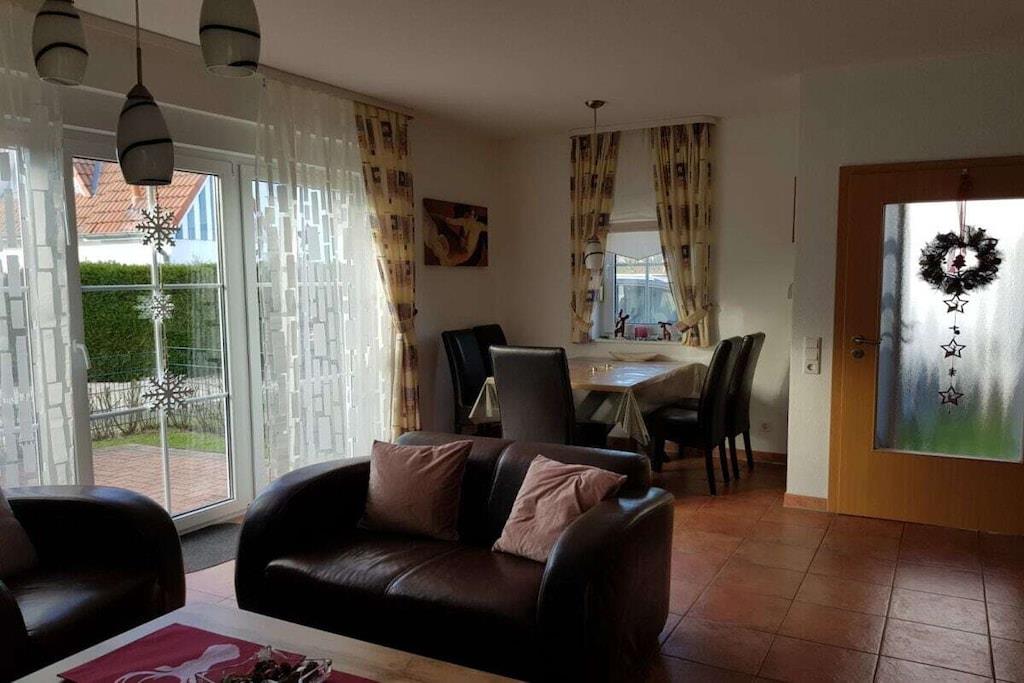 Mit unserer Villa Lisa genießen Sie unbeschwerte Urlaubstage in einem komfortablen Ferienhaus an der Nordsee, ideal für bis zu 4 Urlauber und Kleinkind. Im EG stehen Ihnen eine voll ausgestattete Küche, Essplatz incl. Kleinkindstuhl, Wohnzimmer mit großem Flachbildschirm und Kaminofen zur Verfügung. Außerdem finden Sie hier ein Duschbad mit Toilette. Das 1. OG. mit Elternschlafzimmer incl. TV, einem weiteren Schlafzimmer für 2 Personen, Kinderreisebett und Kinderspielecke (mit 3.TV) wird komplettiert mit einem Duschbad incl. Toilette. Auf 2 Terrassen mit ausreichend Gartenmöbeln für Groß und Klein erleben Sie sonnige Stunden in dem komplett eingezäuntem Garten. Ihr Auto parken Sie direkt am Haus. Urlaub in Hopfen am See:Obj.Nr.67280