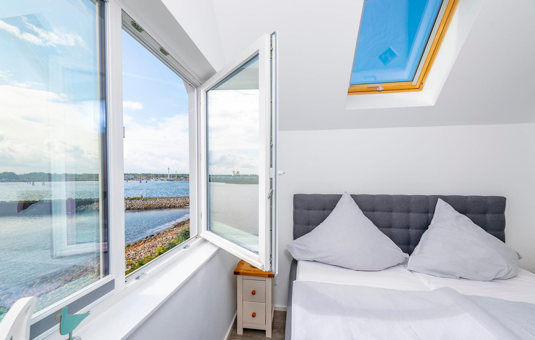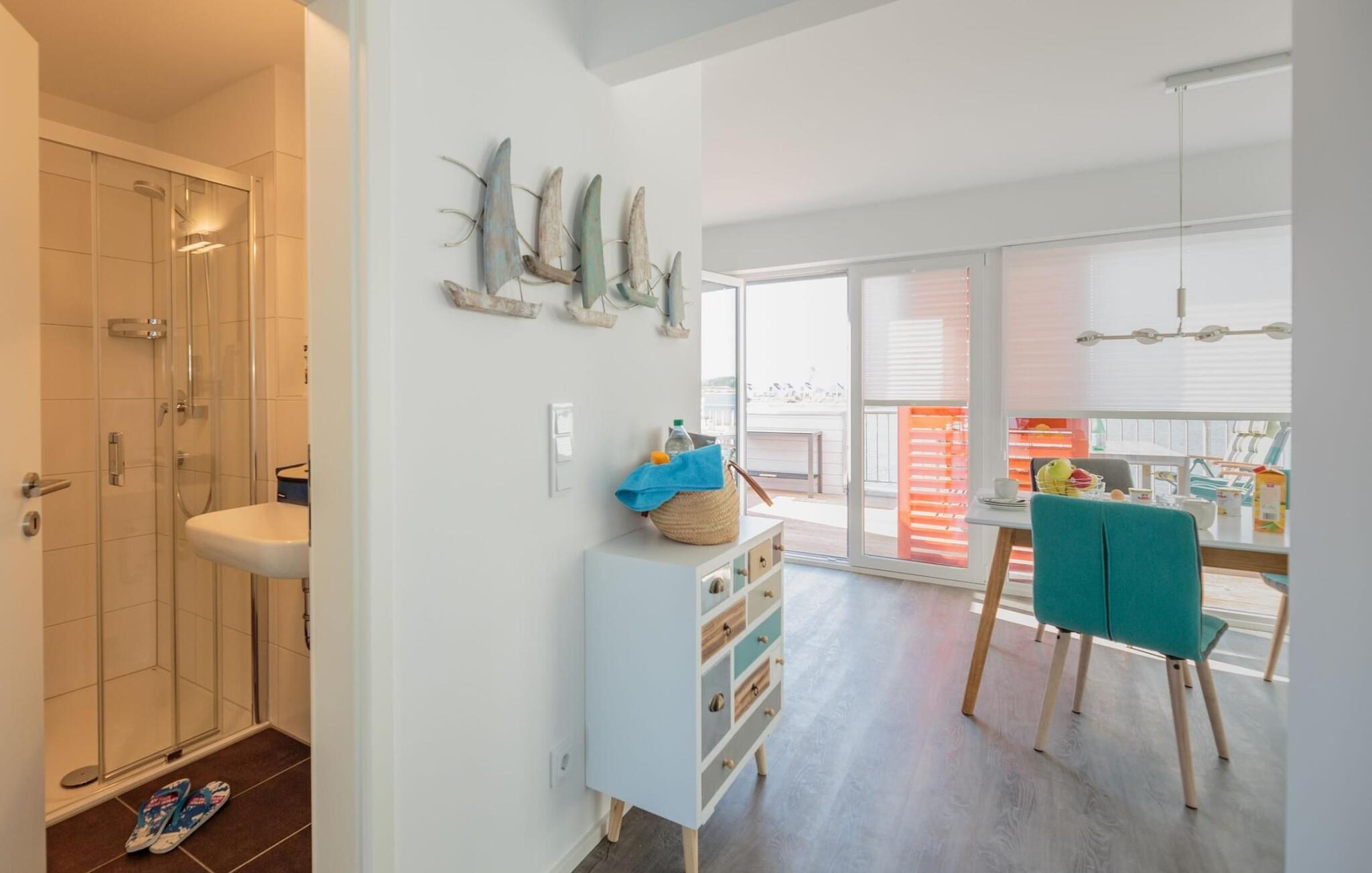 Beliggende på et smalt næs mellem østersøfjorden Slien og sejl- og sportsbådshavnen i Baltic Sea Resort Olpenitz imponerer denne ferielejlighed med sin rummelighed, en fantastisk havudsigt (Østersøen/Schlei) og sol hele dagen mod syd -vendt terrasse.