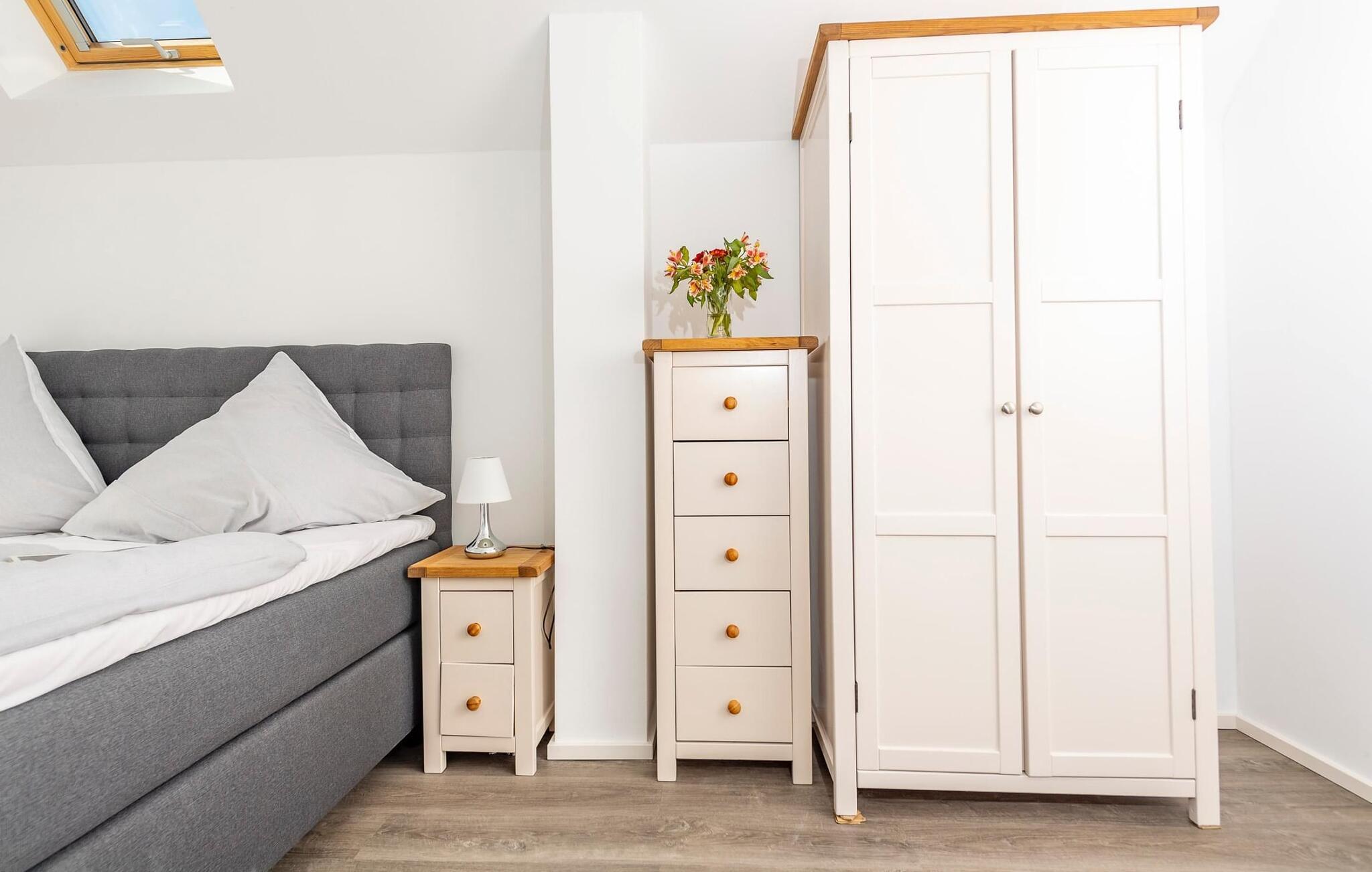 Den rummelige etagelejlighed Drachenfisch imponerer med sin direkte vandplacering på begge sider og lyse, lyse værelser.