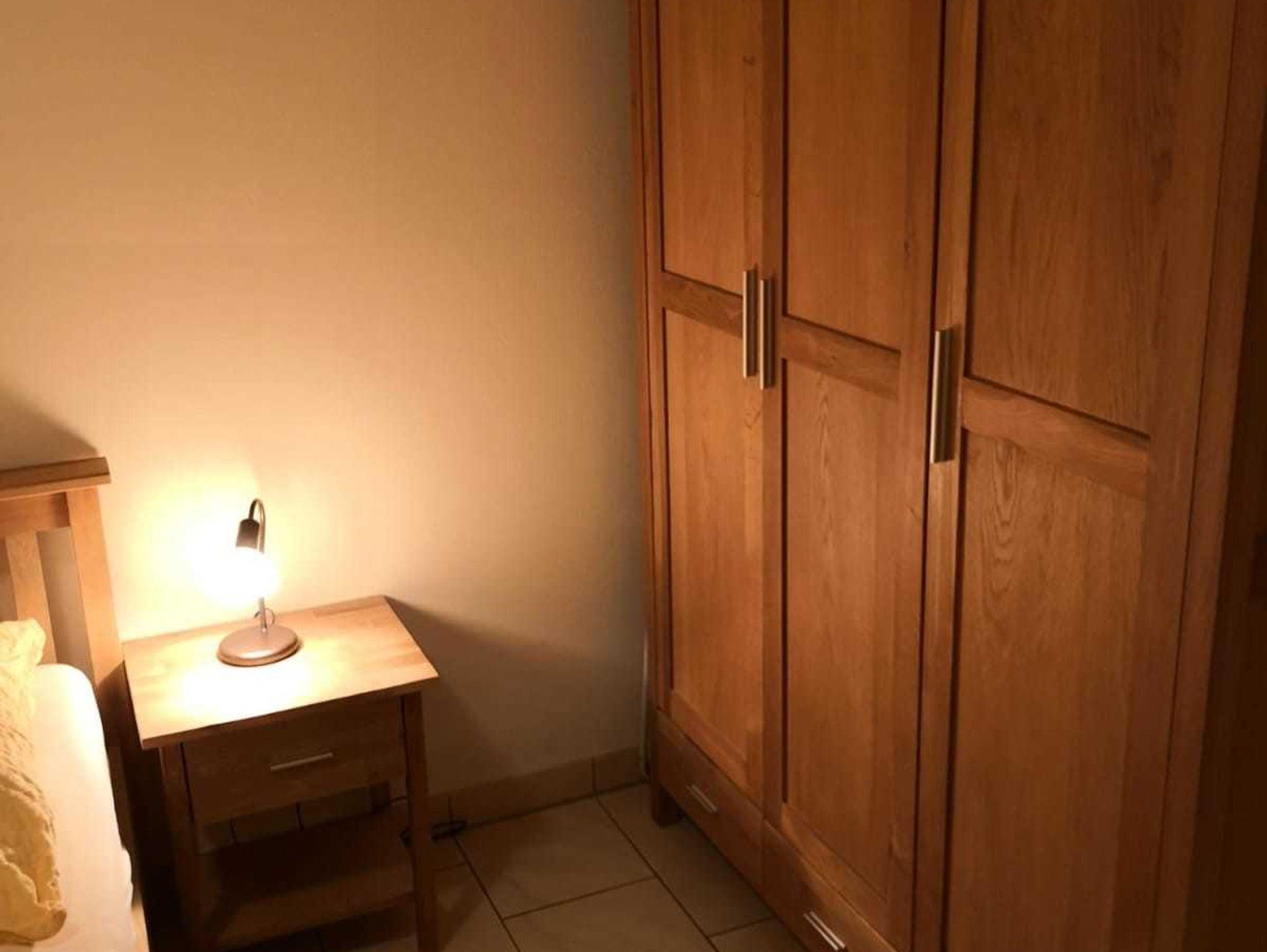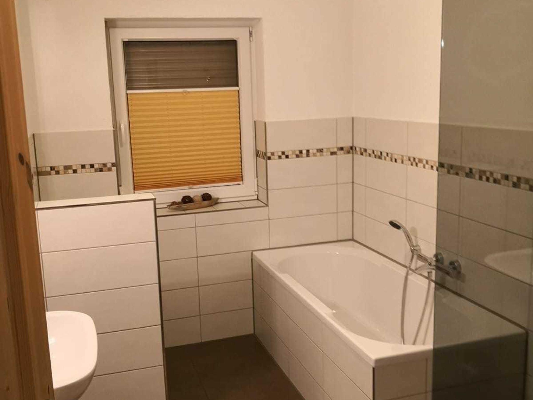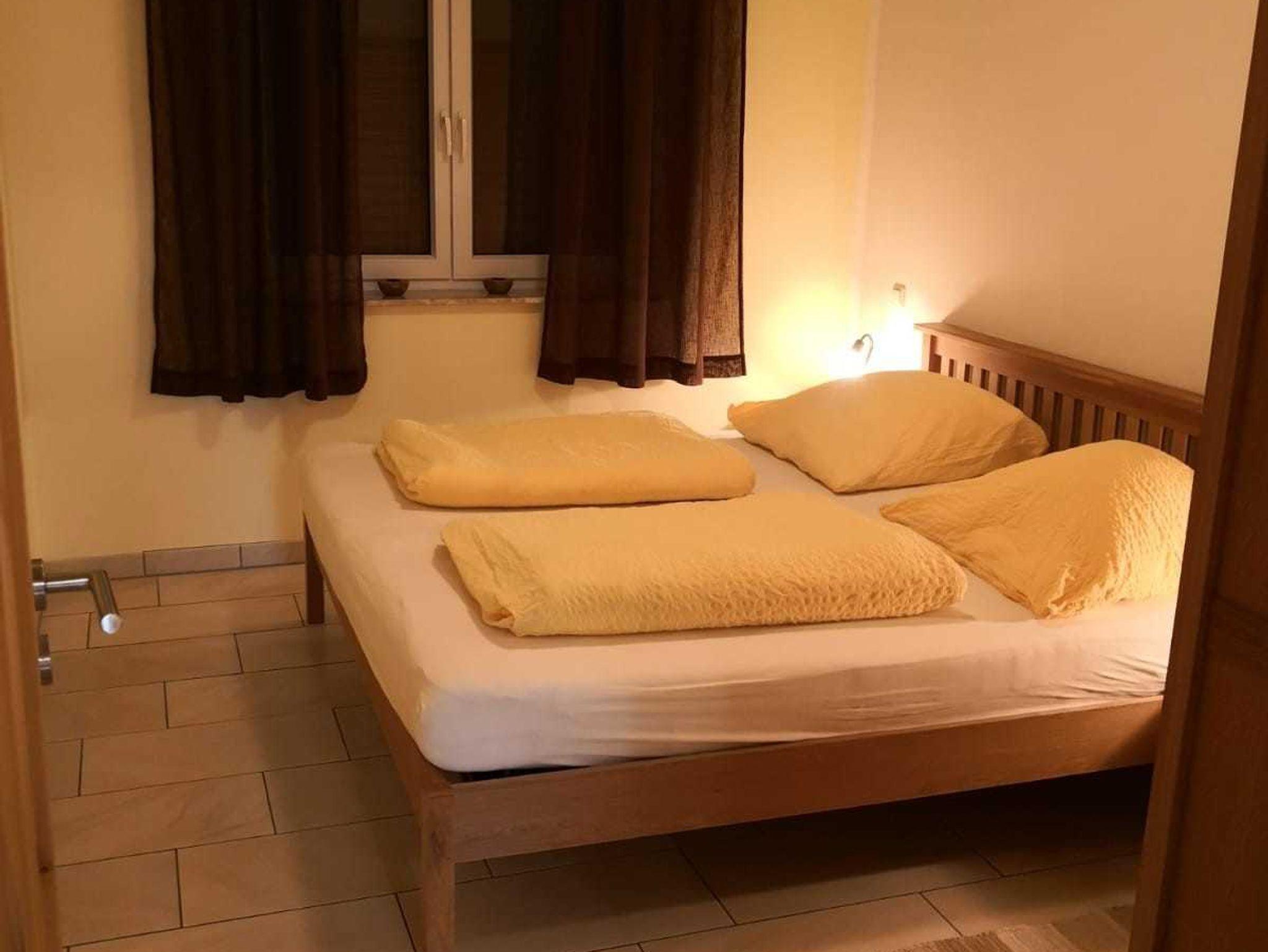 FeWo 2: Schlafzimmer mit Doppelbett und 2 Aufbettungsmöglichkeiten (Schlafsofa); Dusche, Badewanne mit WC