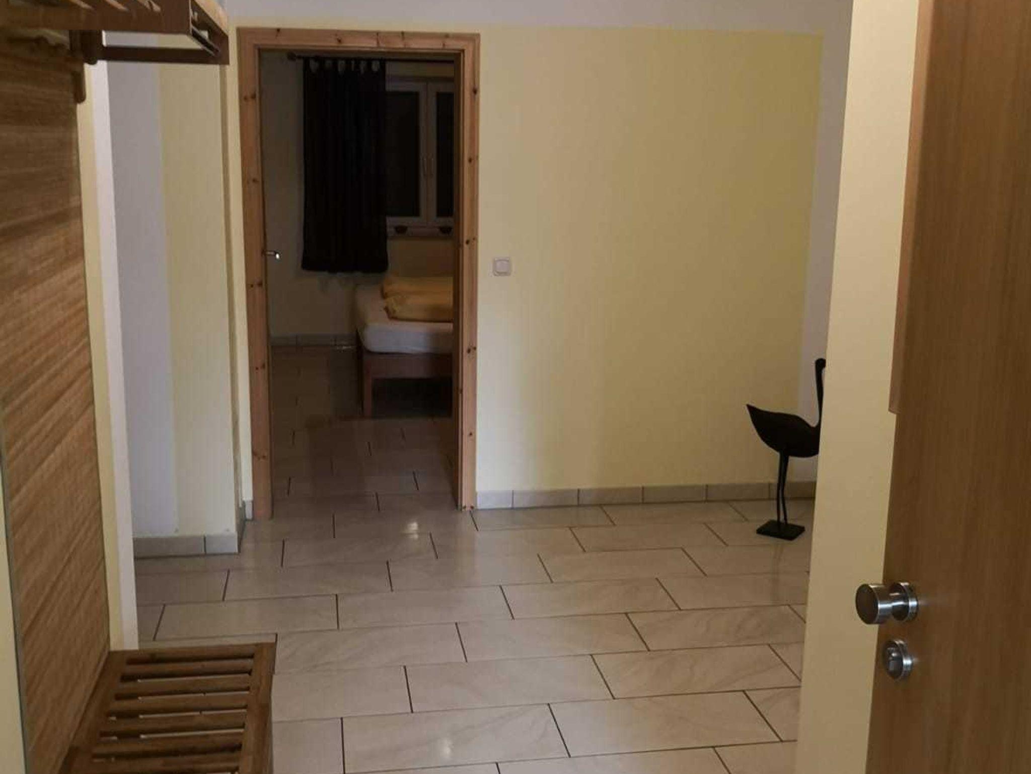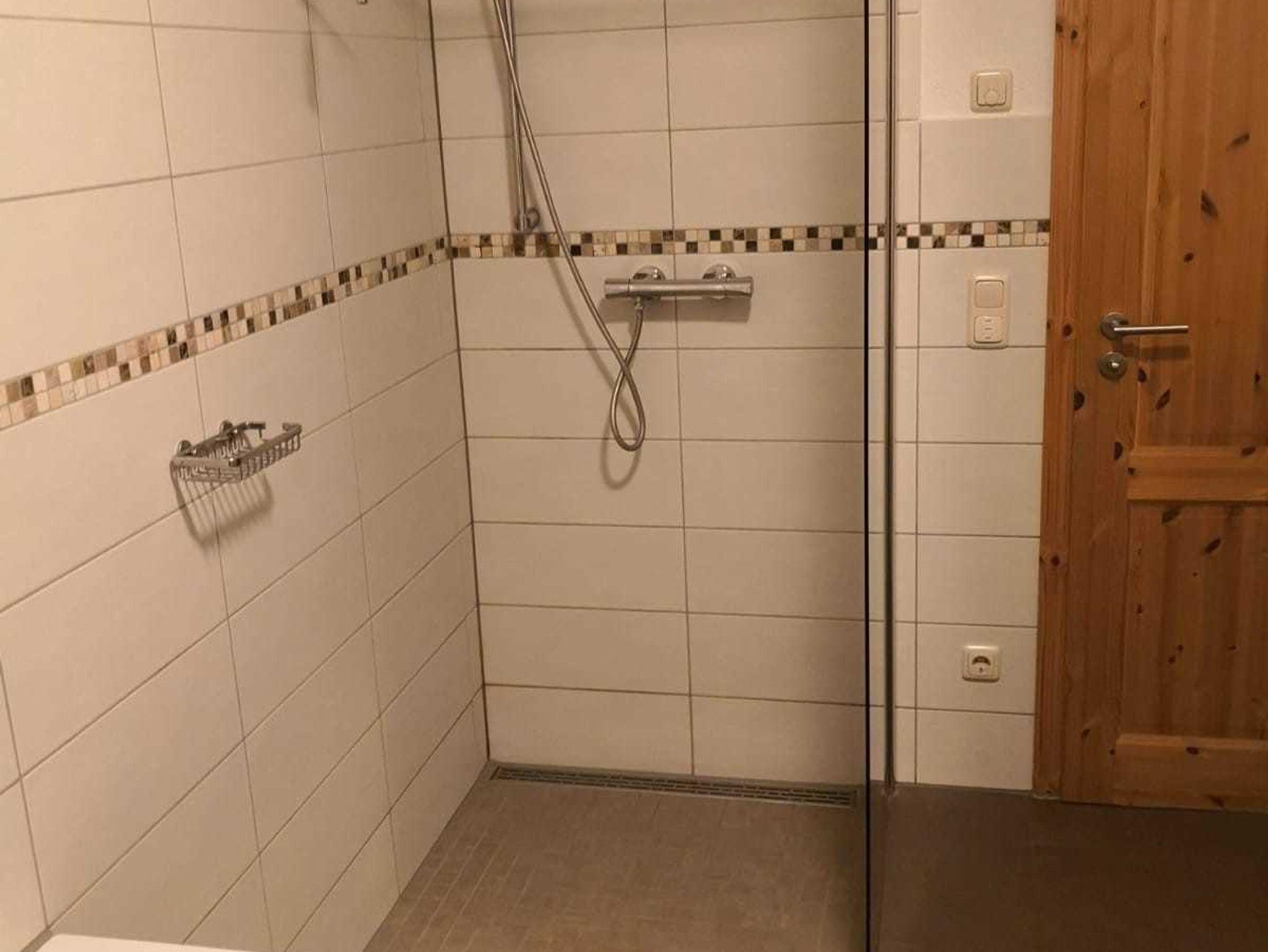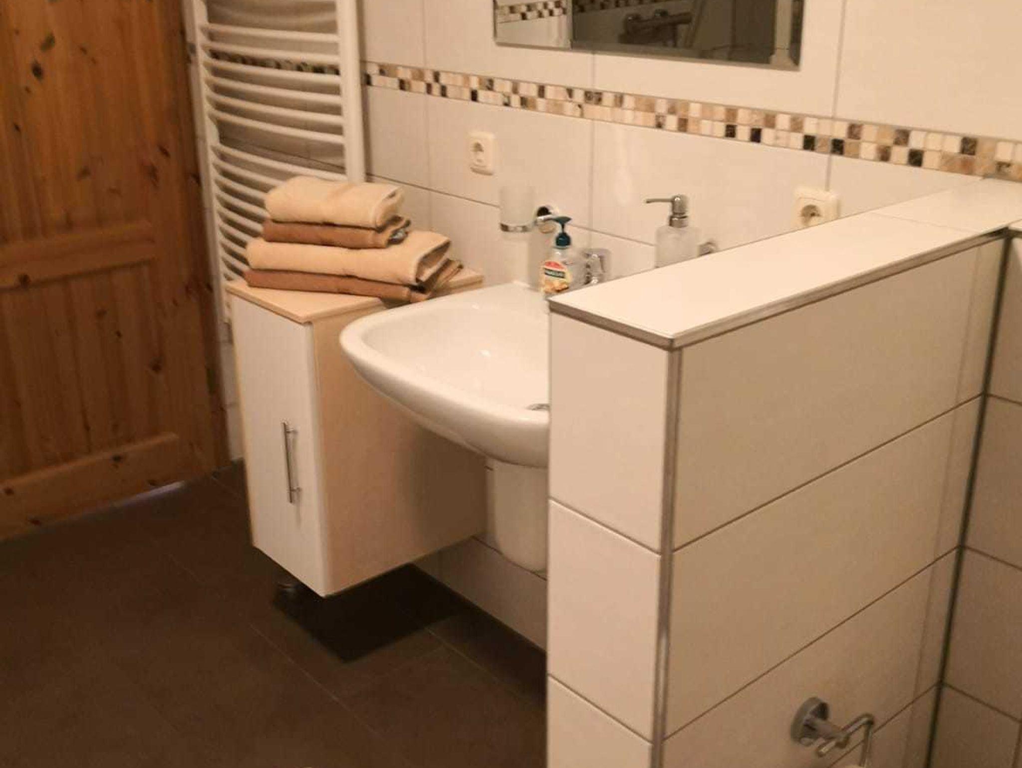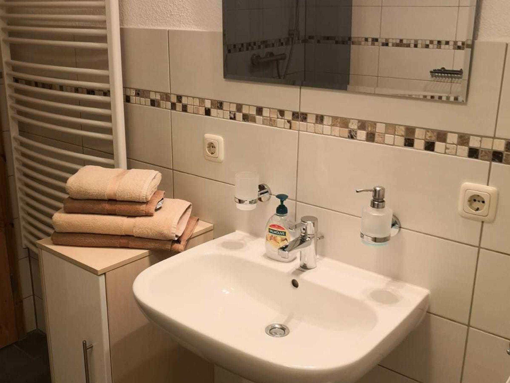 FeWo 2: Schlafzimmer mit Doppelbett und 2 Aufbettungsmöglichkeiten (Schlafsofa); Dusche, Badewanne mit WC