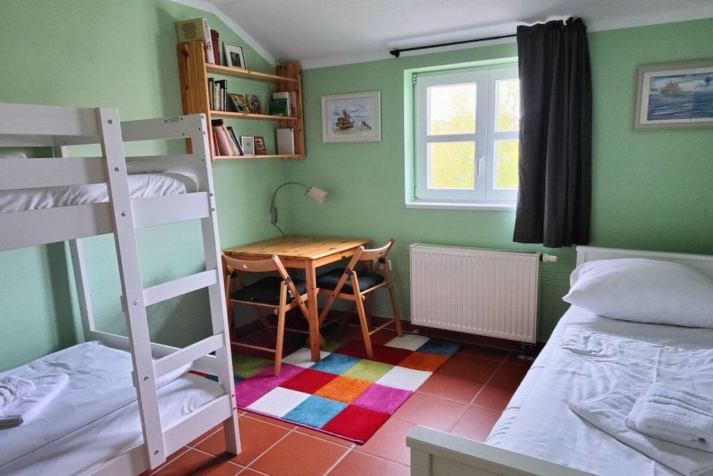 Cozy holiday apartment near the beach with a clear view of the Wieker Bodden, directly on the nature reserve. For holidays with dogs (dog beach) and with children (many different playgrounds, footstool and volleyball court), mini golf, bike rental