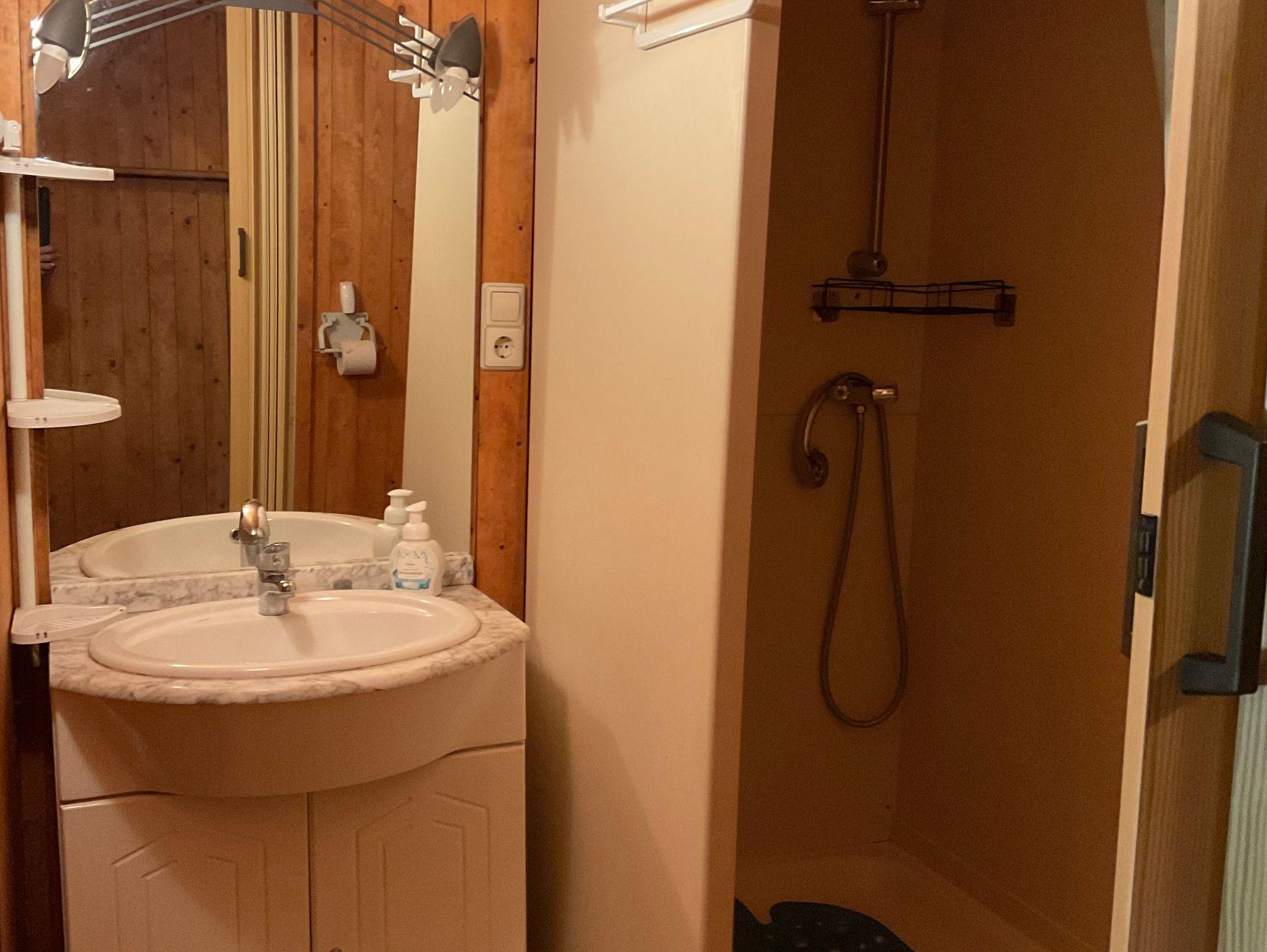 - 1 Wohn-/ Schlafzimmer mit Doppelbett und 2 Einzelbetten, sowie Küchenzeile