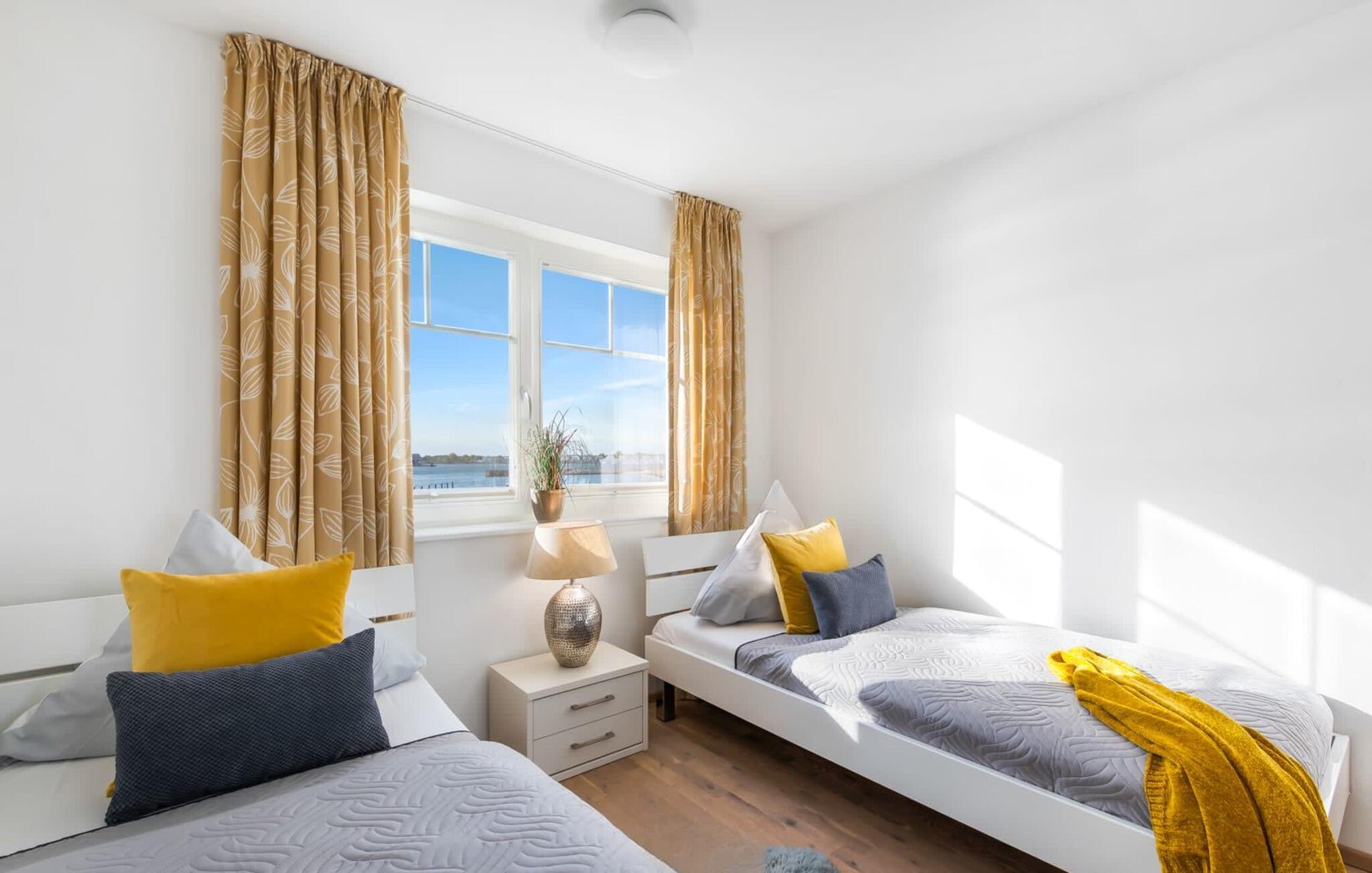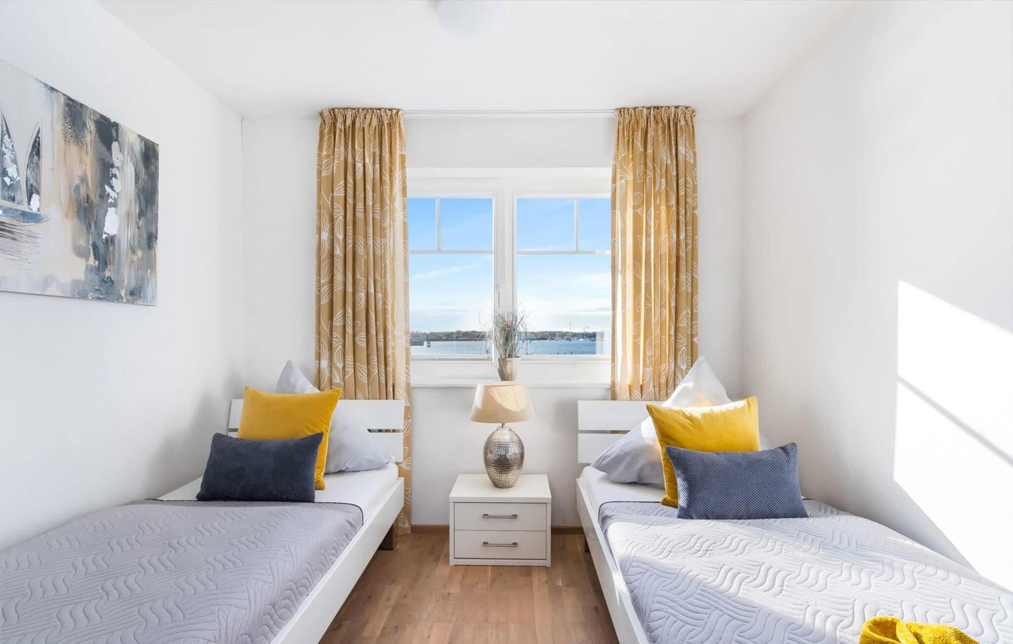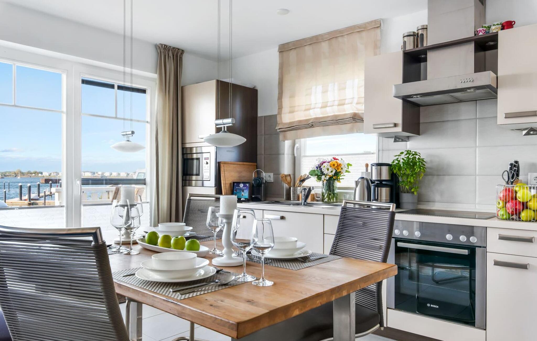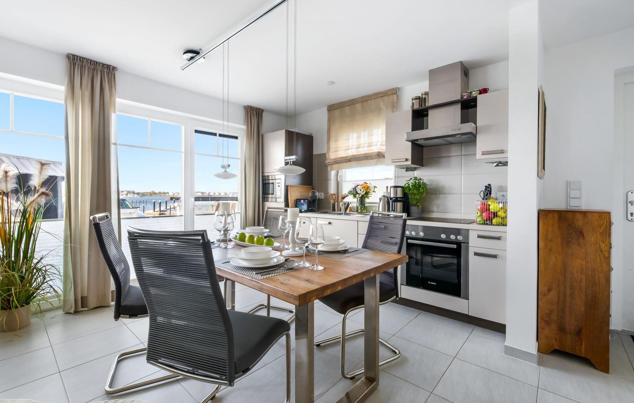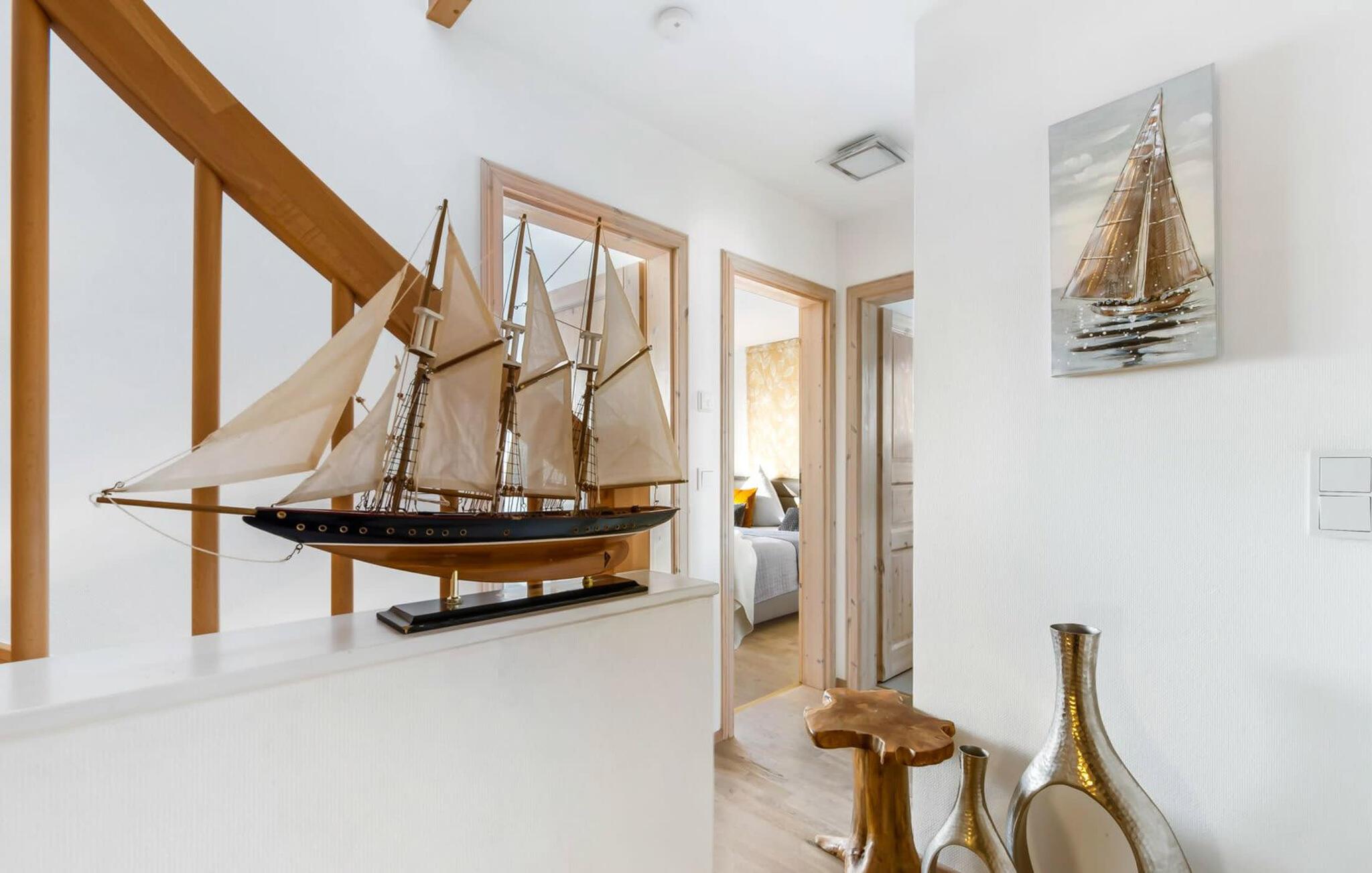 Feriehuset Dreimaster er et moderne strandhus og imponerer med sin direkte nærhed til den hvide sandstrand i Østersøen Resort Olpenitz, tre solterrasser og en fantastisk udsigt over sejl- og sportsbådshavnen, Østersøen og Sleien. Feriehusets indretning imponerer med en kombination af naturlighed og moderne design. Træmøbler af høj kvalitet og naturlige farver og materialer møder ekstravagante lamper og designermøbler - den perfekte kombination af komfort og stil. Sejlskibe, der passerer i travlheden ved havneindløbet, måger, der flyver rundt og den karakteristiske Østersøbrise skaber en maritim atmosfære. Udstyret med sauna, spabad og pejs, lover feriehuset Dreimaster også wellness og afslapning i hver sæson. Sommerhusets stue/spisestue er oversvømmet med lys. Fra gulv-til-loft vinduesfronten er der udsigt til den tilstødende sydvendte terrasse og sejl- og fritidsbådshavnen. Den spændende havnebiograf er garanteret og kan ses, mens man spiser sammen ved spisebordet eller fra det komfortable siddeområde. Det fuldt udstyrede køkken-alrum lader intet tilbage at ønske. Her kan man fremtrylle lækre feriemåltider. På første sal har feriehuset to hyggelige soveværelser. Det store soveværelse er drømmeagtigt i egentlig forstand, for udover sin egen solrige altan kan I vågne op og falde i søvn her med en smuk udsigt over lystbådehavnen. Træd direkte ud på terrassen med en kop kaffe i morgenkåben, se bådene, bølgerne og travlheden i havnen... hvad kan I ønske jer af havet? Det andet soveværelse har også en direkte udsigt over havnen. Takket være spejlskabet kan det nydes fra alle vinkler. Et rummeligt badeværelse med et stort hjørnespabad til to personer giver også wellness-øjeblikke på dette niveau. Spejl, spejl på væggen... med en sandstrand og den rasende Østersø har denne pool absolut den smukkeste udsigt i hele landet. I kan dvæle over tingene i studiet på anden sal, en ekstra stue med en fænomenal udsigt: på den ene side stranden og den brede Østersø, på den anden side havnen og Slei... Afslapning foran denne unik kulisse er garanteret af to designer-afslapningslænestole med deres egen læsestation. Den omkringliggende tagterrasse med udsigt over lystbådehavnen, stranden og Østersøen inviterer jer til at solbade og nyde romantiske solnedgange. Hvad enten det er med en bog og vin, med en spændende film eller romantisk foran den knitrende ild i pejsen, er studiet højdepunktet i feriehuset Dreimaster, for her kan I slappe af og slappe af. Den in-house store finske sauna med udsigt over havnen er også tilgængelig på dette niveau for et beroligende spa-program. Den tilstødende bruser sørger for den nødvendige køling. Et gæstetoilet i stueetagen tilbyder ekstra komfort. Ud af hoveddøren og ud på stranden: direkte adgang til stranden er bag husets indgang og gør ferieoplevelsen perfekt. Feriehuset Dreimaster er en boligenhed. Der er en parkeringsplads lige foran huset. Vores favoritsted: Sæt fødderne op i studiet med en bog i hånden og slap af og nyd solnedgangen og den knitrende pejs med udsigt til havnen, stranden og Østersøen. Feriehuset har ikke WiFi-forbindelse. Bemærk venligst: OstseeResort Olpenitz er meget populært, og der bygges fortsat i parken. Ikke desto mindre kan I se frem til en 5-stjernet standard og et førsteklasses ophold. Byggeaktiviteterne kommer ikke til at forstyrre jer på ferien, og derfor gives der ikke yderligere afslag i prisen.