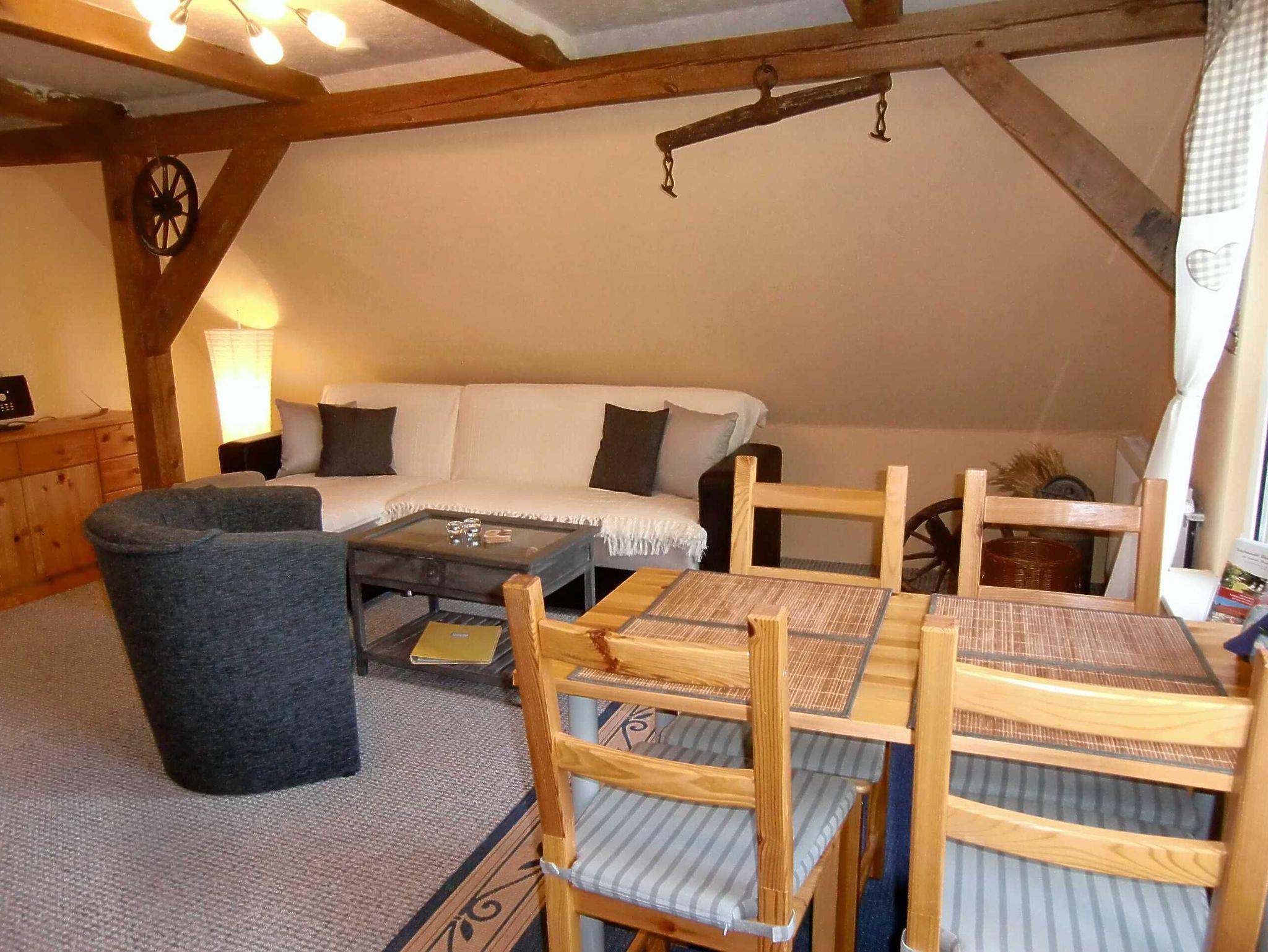 Das Appartement Country Inn ist ein wenig im ländlichen Stil eingerichtet, dabei aber modern, sehr gemütlich und bequem. Die urige Atmosphäre mit vielen sichtbaren Balken in dieser idyllischen Ruhe passt prima. Dazu komfortabel mit volleingerichteter Küchenzeile und einem großen, hellen Bad mit Fenster, Fön und Kosmetikspiegel. Auch diverse Kosmetikprodukten sind vorhanden, falls Sie Ihre eigenen vergessen haben. Das Bett und auch die Schlafcouch sind sehr bequem. Angeboten werden ofenfrische Brötchen in Varianten ab 9 Uhr an die Tür gehängt. Oder ein Frühstück für 15,- Euro pro Person ab 9 Uhr ins Zimmer oder in den Garten serviert (nur außerhalb der Saison). Bei Gelegenheit gibt es einen Grillabend, einen Fischabend oder ab und an selbstgebackenen Kuchen. Alles ist auf Bequemlichkeit und Freundlichkeit ausgerichtet - der Gast möge sich von Anfang an zu Hause fühlen.