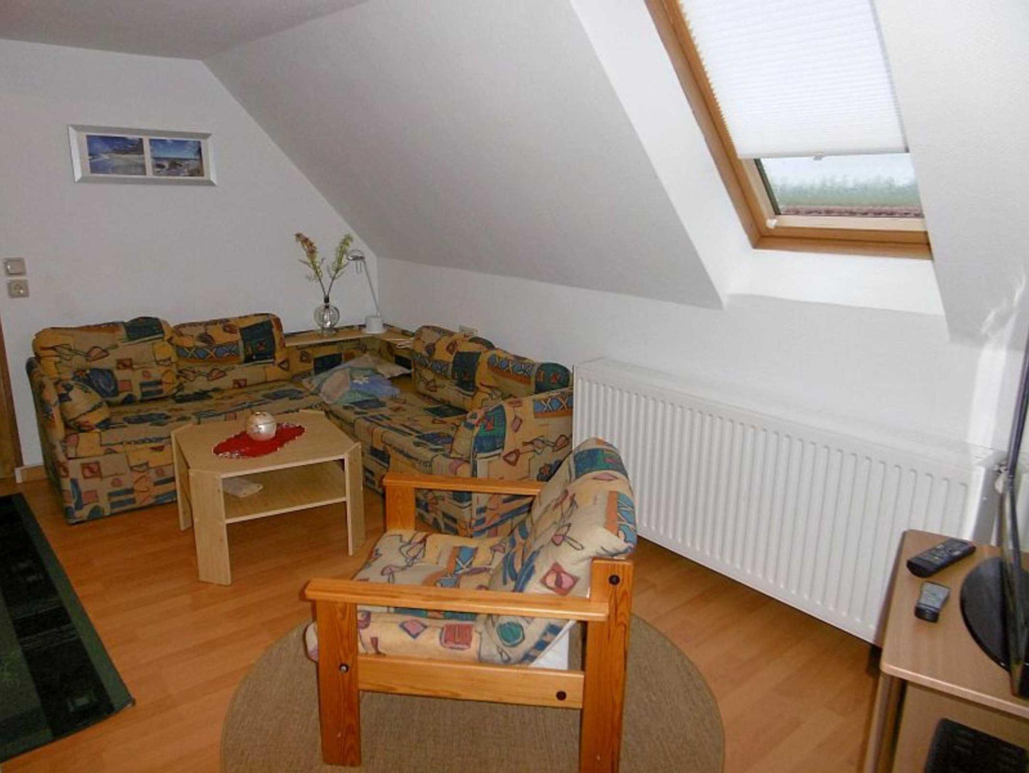 Die Ferienwohnung befindet sich im Dachgeschoß im Haus des Vermieters. Auf dem großen Grundstück steht Ihnen eine Liegewiese mit möblierten Sitzecken und der Grillplatz zur Verfügung.