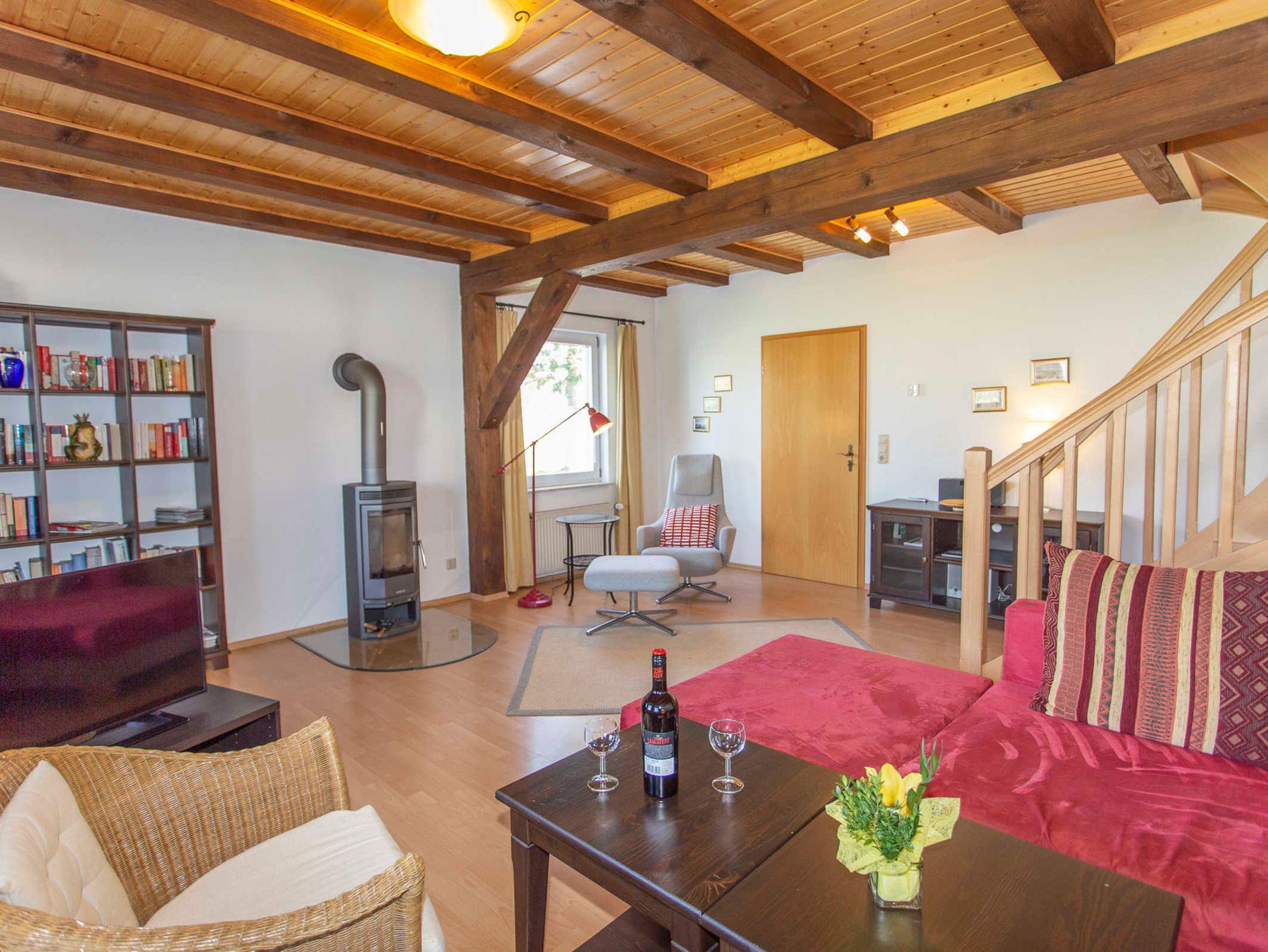 Die Ferienwohnung über 2 Etagen befindet sich auf der linken Seite des Hauses. Sie verfügt über eine große Küche mit Esstisch und allem was dazu gehört, einem Wohnzimmer mit Sitzgruppe und Kamin, den 2 Schlafzimmern mit Doppelbetten und einem Eizelbett sowie einem Duschbad. Auf dem großen Grundstück haben Sie die Möglichkeit sich aktiv zu erhohlen. Energiekosten nach Verbrauch 0,47 Euro /Kwh / vor Ort