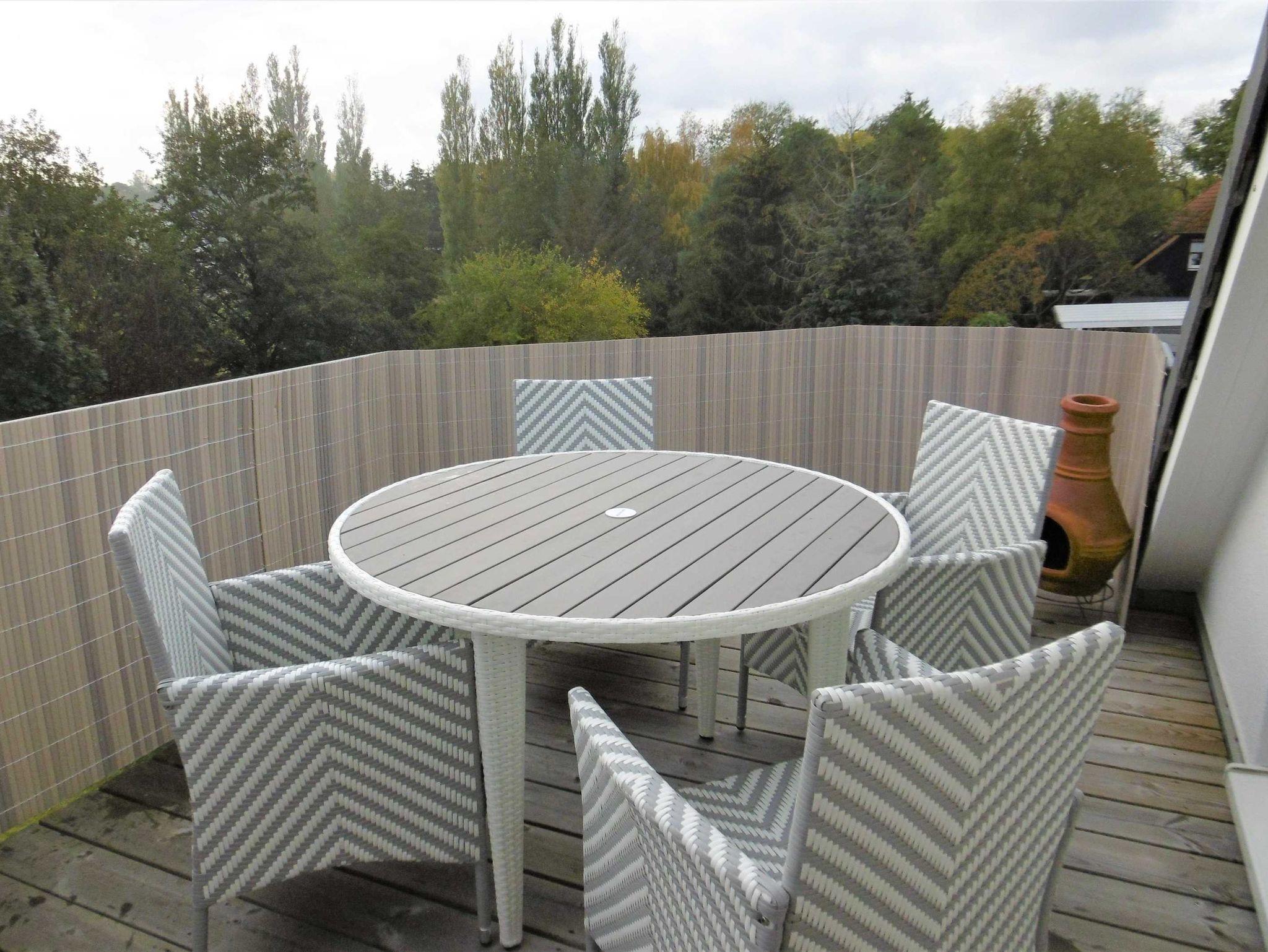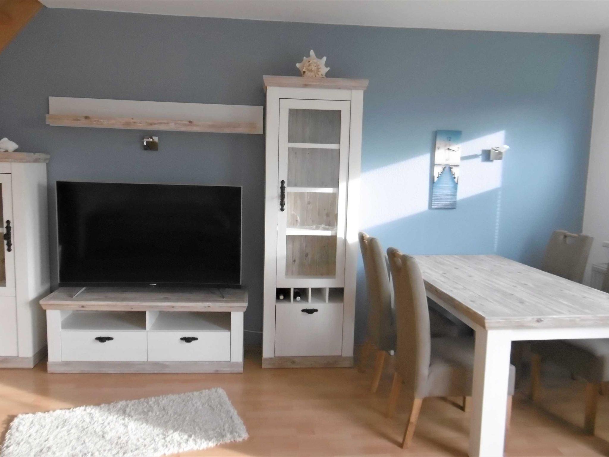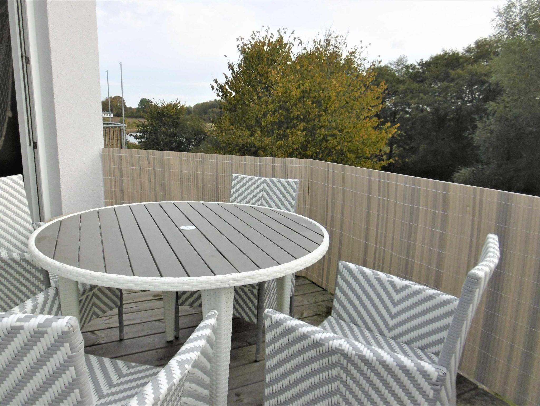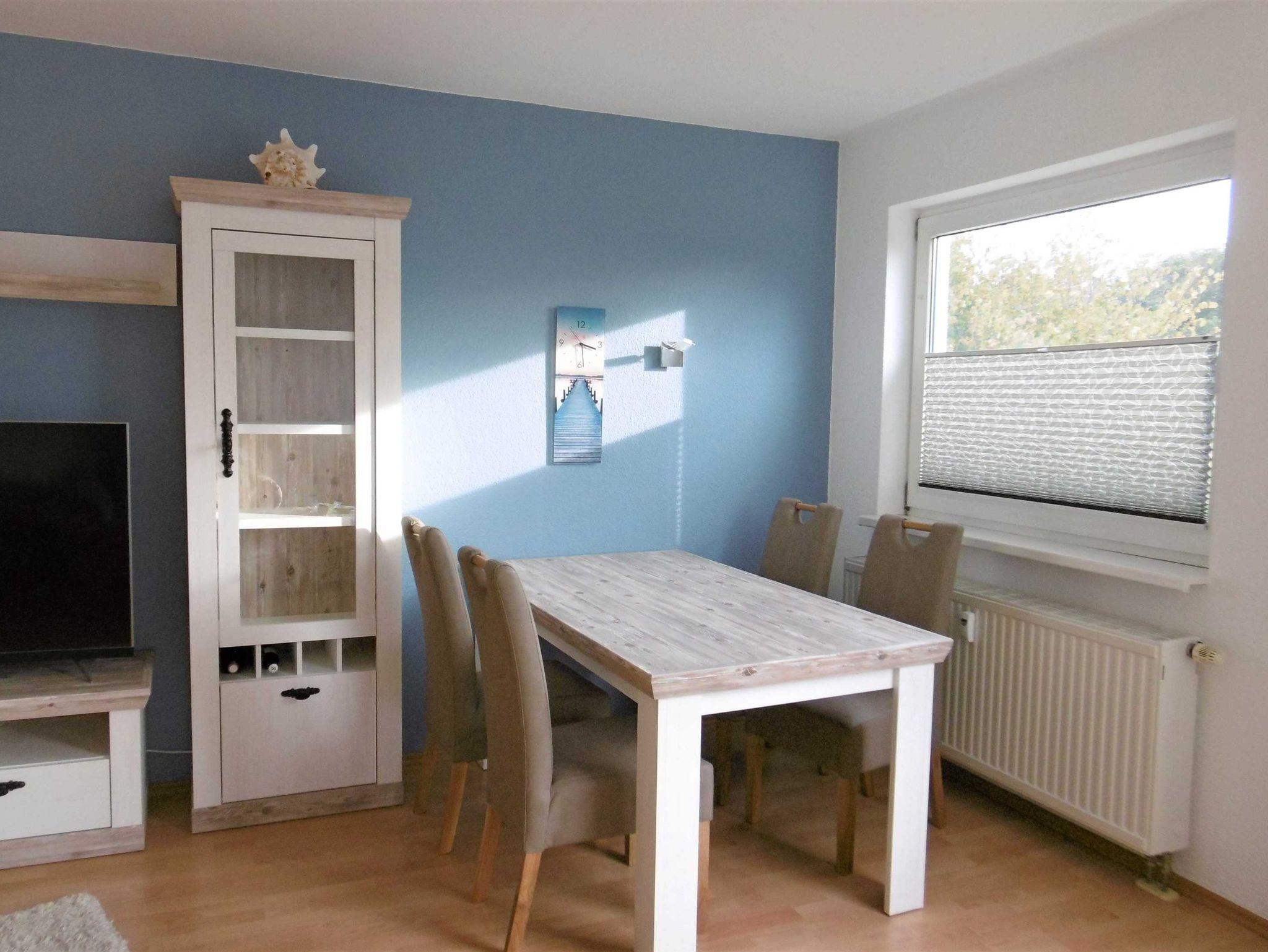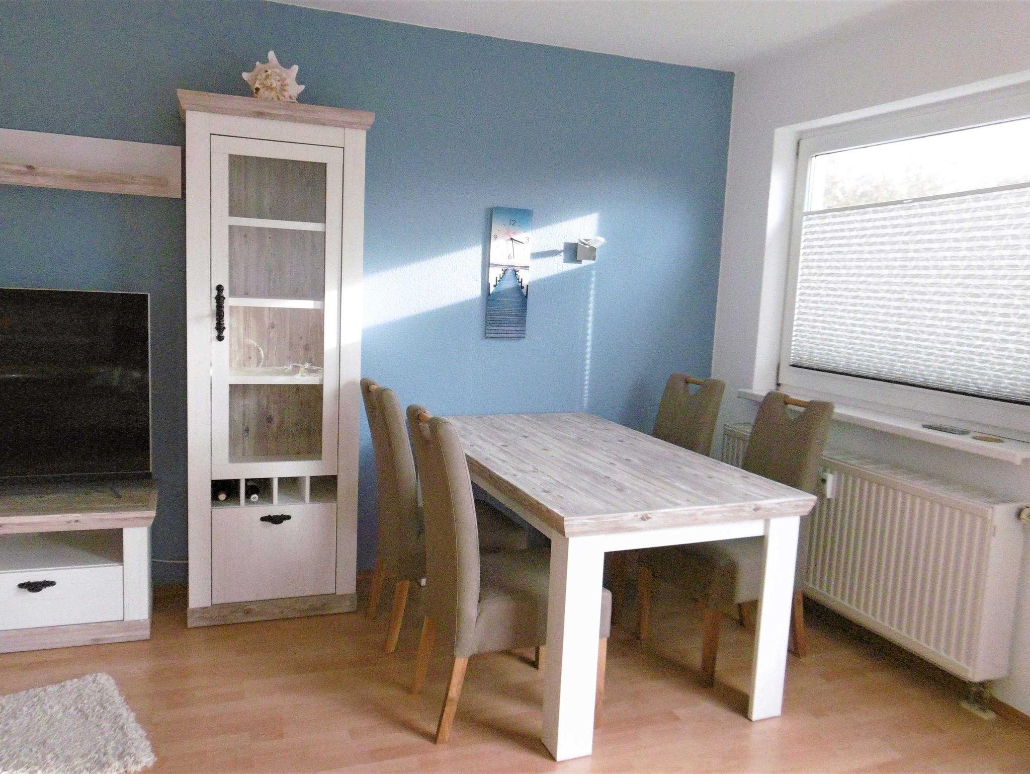 Unsere modern eingerichtete Ferienwohnung im Obergeschoß verfügt über ein Wohnzimmer mit Sitzgruppe (TV) mit Esstisch, der Küche mit Spülmaschine, Herd und Backofen, den 3 Schlafzimmern ( 2 Schlafzimmer mit Doppelbett und ein Kinderzimmer mit Etagenbett, das zweite Schlafzimer mit dem französischen Bett befindet sich in der Mansarde) sowie dem Duschbad. Von dem 8 m² großen Balkon haben Sie einen wunderbaren Ausblick in die Natur und den nahe gelegenen Moorsee.