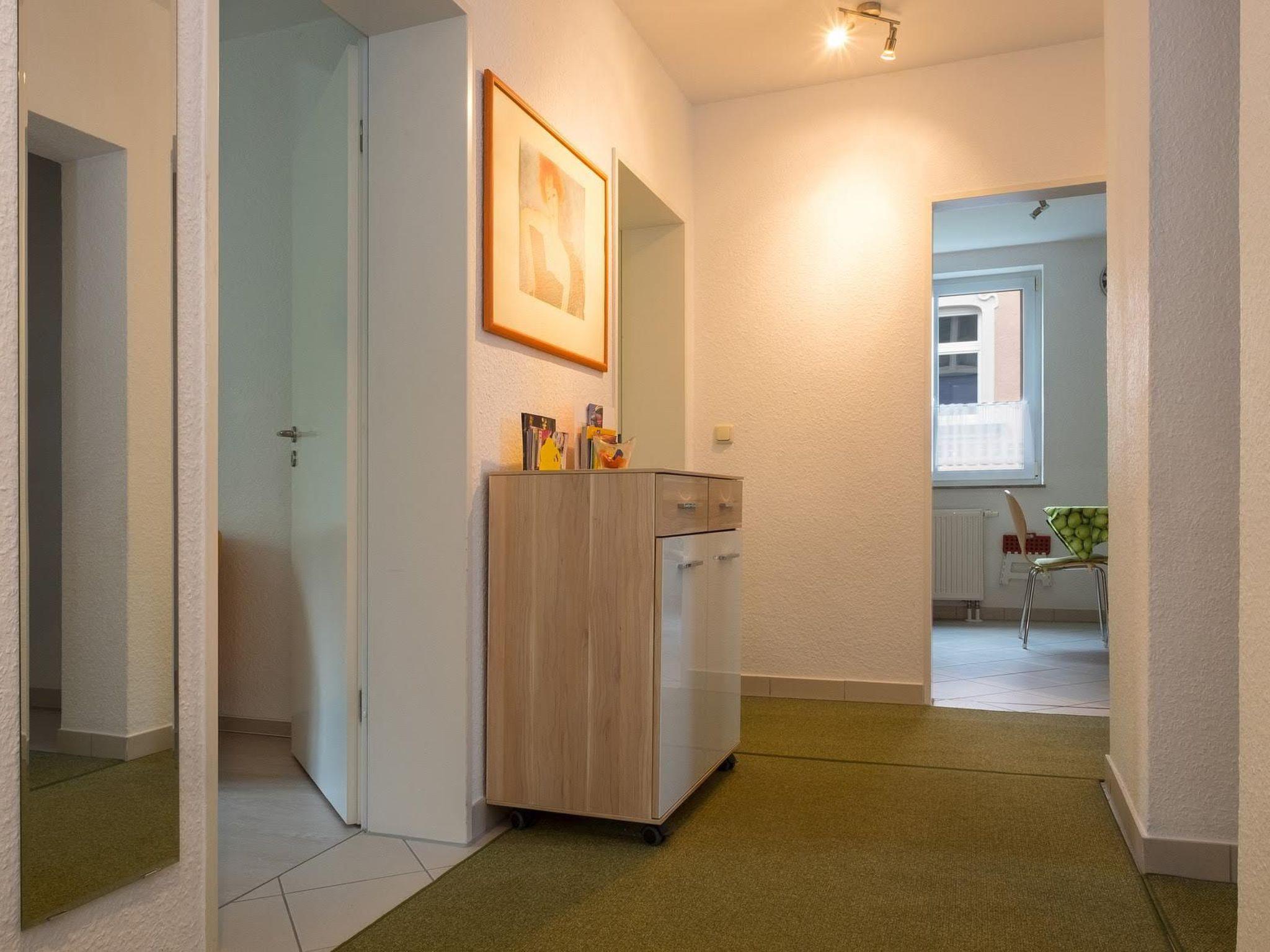 Your apartment comprises a living room, two bedrooms each with two single beds, a kitchen, a bathroom and a spacious wardrobe. Bed linen is included in the price. There is an additional sofa bed in the living room, so that five people can be accommodated. The built-in kitchen has a four-ring hob and oven, coffee machine, toaster, kettle, fridge and freezer, extractor fan, crockery and plenty of cooking utensils. A vacuum cleaner, iron, ironing board and tea towels are provided. The bathroom has towels, a hairdryer, bath, WC, washing machine and towel stand. Evening entertainment is provided by the satellite LCD TV, a Bluray player, a radio, books and a collection of games. There is central heating with a radiator in each room, except the hallway. A child’s travel bed and a highchair can be provided on request.
