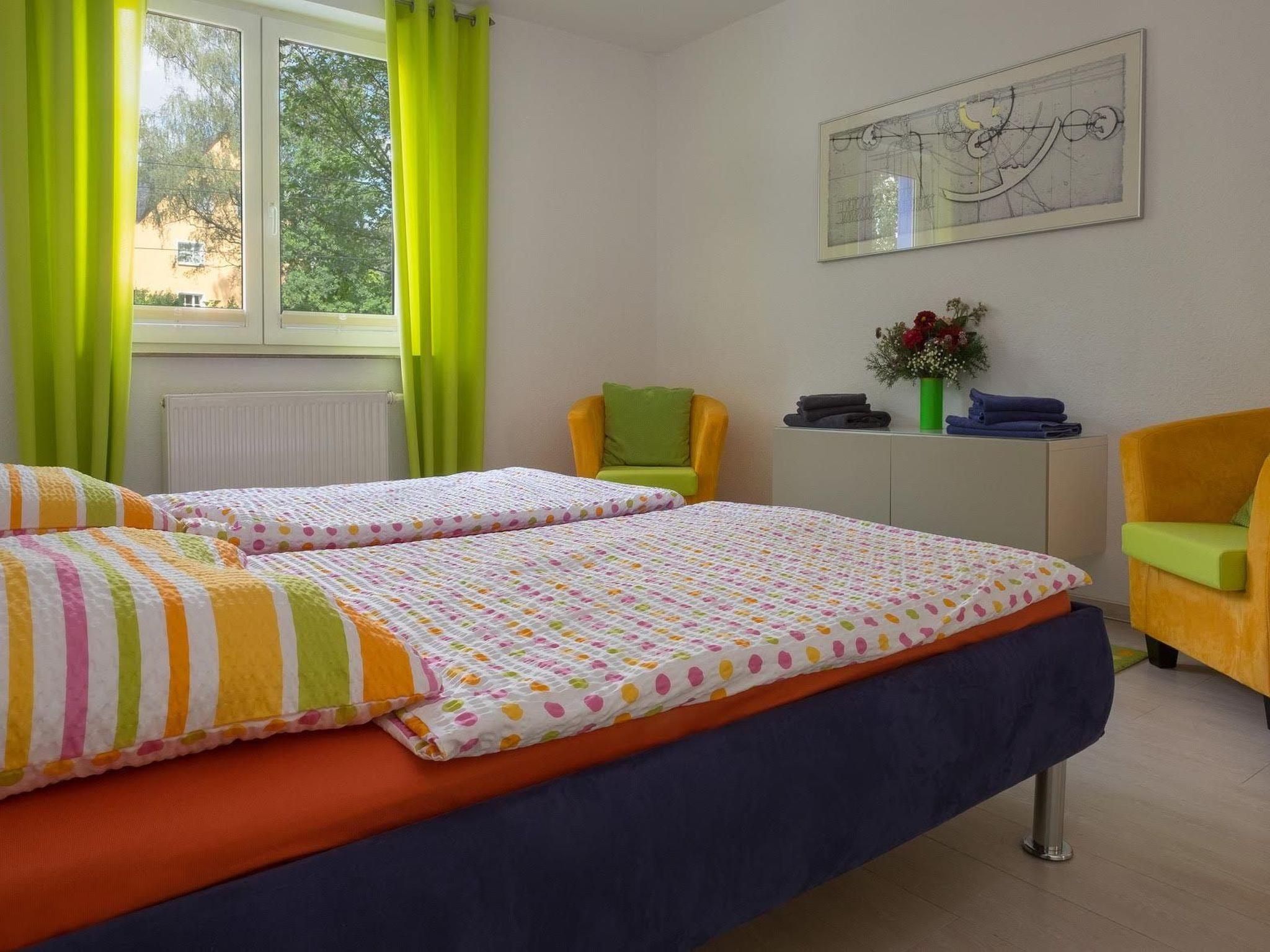 The holiday apartment is in the south of Dresden and has excellent public transport connections to the city centre and the surroundings. You can leave your car parked. The apartment has been classified as four-star by the DTV. The owner herself lives in the house and is happy to assist with any queries. The house was built in the 1930s in a classical style and was fully renovated in 1999 and again in 2014.Holiday apartment with a generous balcony on the outskirts of the city with good connectionsThe apartment is in the south of Dresden and has excellent public transport connections into the city centre and the surroundings. You can leave your car parked. The apartment has been classified as four-star by the DTV. The owner lives in the house and is happy to provide advice. The house in Dresden was built in the classical style of the 1930s and was completely renovated in 1999 and again in 2014.Your apartment comprises a living room, two bedrooms each with two single beds (90 x 200cm), a kitchen, a bathroom and a spacious wardrobe. Bed linen is included in the price. The built-in kitchen includes a ceramic hob, oven, extractor fan, coffee machine, toaster, kettle, fridge and freezer, dishwasher, crockery and kitchen utensils. A vacuum cleaner, iron, ironing board and tea towels are provided. The bathroom has towels, a hairdryer, a bath, a WC and a washing machine. Evening entertainment is provided by an LDC with satellite channels, a Bluray player, radio, books and a collection of games. There is central heating with a radiator in each room, apart from the hallway. A child’s bed and a highchair can be provided on request.The outdoor area has a bicycle stand, a balcony with garden furniture and a pond with a stream in the shared garden. There is a car parking space on site, which can be used on agreement with the owner, but you can also always find free spaces on the street in front of the house.It is a non-smoking apartment in a non-smoking house!Holiday on the outskirts of Dresden – almost rural, but within easy access of the centre by tram (a stop 200 metres away). If you are looking for trade fair accommodation in Dresden you can save yourself the stress of looking for a parking space at the trade fair grounds and book your accommodation here for two to five people. It is barely 30 minutes by tram from door to door. You can also stop off in the evening in the historical old town or the trendy district Dresden-Neustadt, as tram line 11 runs practically the whole night. The nearest grocery shops are about 500 metres away.