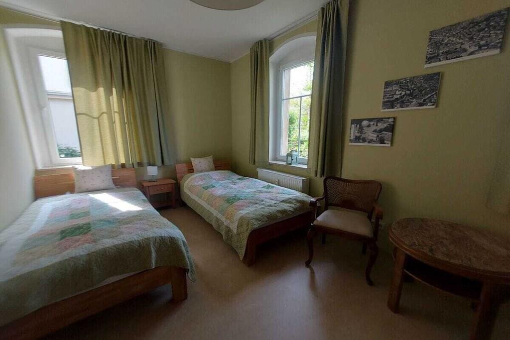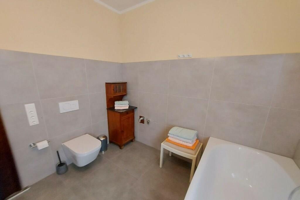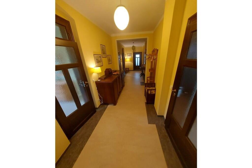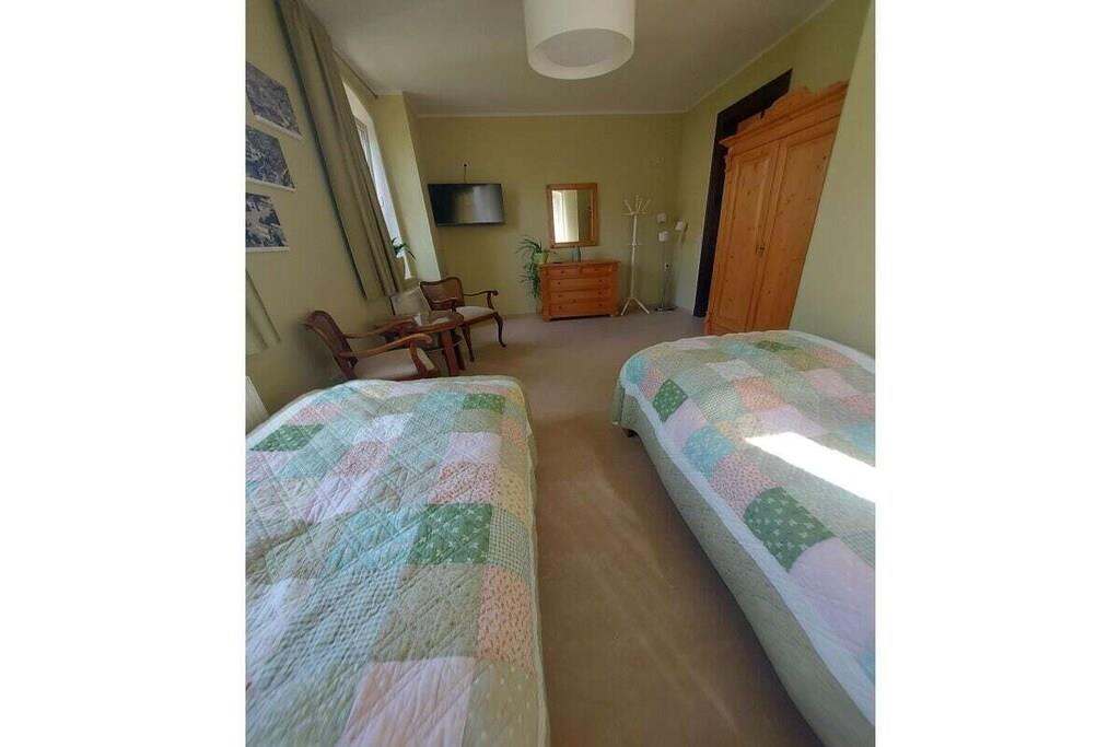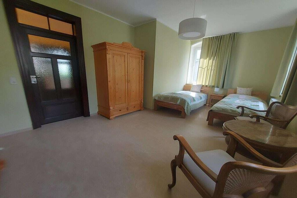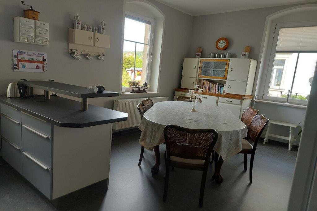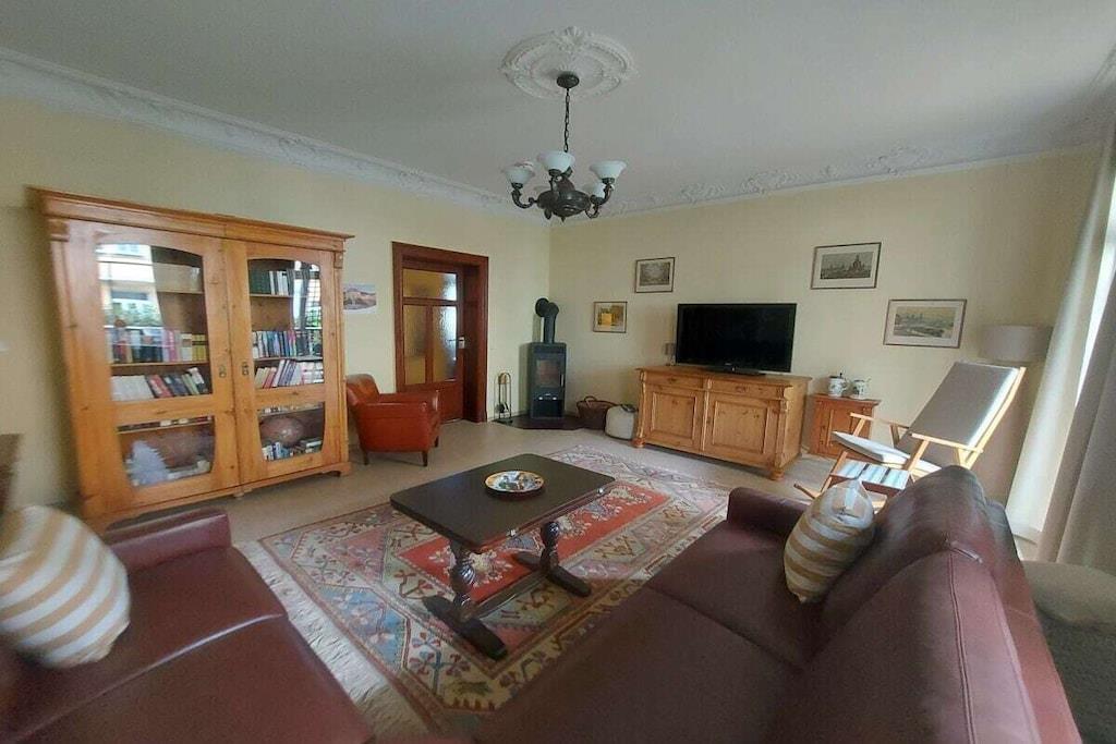 Ihre Unterkunft ist eine Etagenwohnung auf 150 qm im Hochparterre. Zur Verfügung stehen drei großzügige Schlafzimmer, zwei als Doppelbettzimmer und eines als Zweibettzimmer. Alle Schlafzimmer sind mit einem Smart-TV ausgestattet, bieten genügend Raum für persönliche Dinge und sind separat vom Flur aus zugänglich. Zwei Tageslichtbäder mit WC und Waschgelegenheit, einmal mit Badewanne und einmal mit großzügiger Wellness-Dusche sorgen für Ihr persönliches Wohlbefinden. Für schöne Stunden bei gutem Essen steht unsere großzügige Wohnküche bereit, ausgestattet mit allem was hierfür notwendig und hilfreich ist. Am Kaminofen im Wohnzimmer kann der Abend im Winter gemütlich ausklingen, im Sommer lädt der Balkon dazu ein. Um aufkommender Langeweile zu begegnen, stehen Bücher und einige Spiele zur Vefügung.